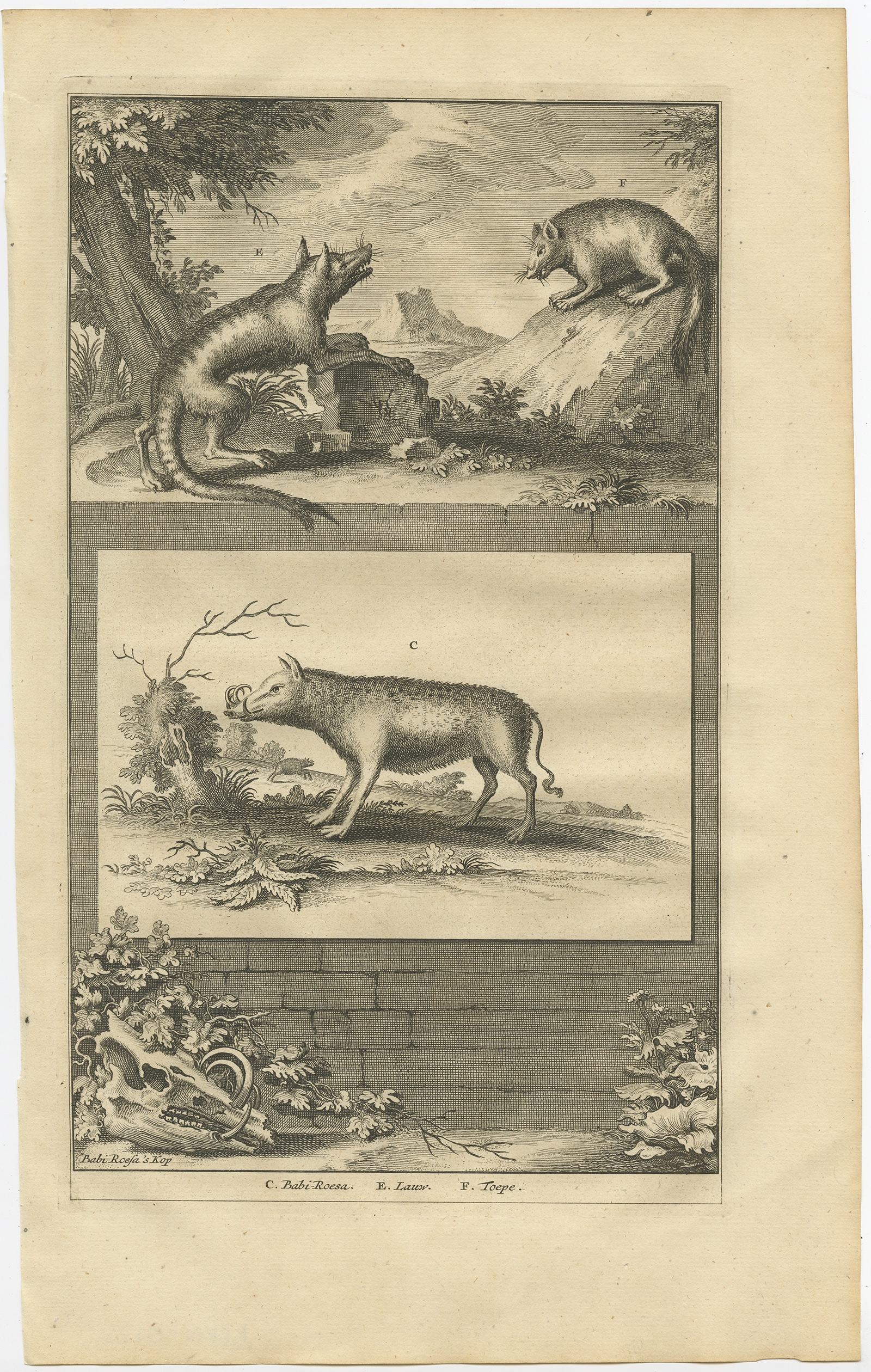 Babi Roesa (..) - Valentijn (1726) $ 101.78 Availability: in stock Condition : Very good, general age-related toning. Please study image carefully. Date : 1726 Overall size : 21 x 34 cm. Image size : 16 x 27 cm. Description: Antique print depicting a babirusa and two other animals. This print originates from 'Oud en Nieuw Oost-Indiën' by F. Valentijn. Artists and Engravers: François Valentijn (1666-1727), a missionary, worked at Amboina from 1684 to 1694 and 1705 to 1713 and travelled extensively in the VOC's lands. |