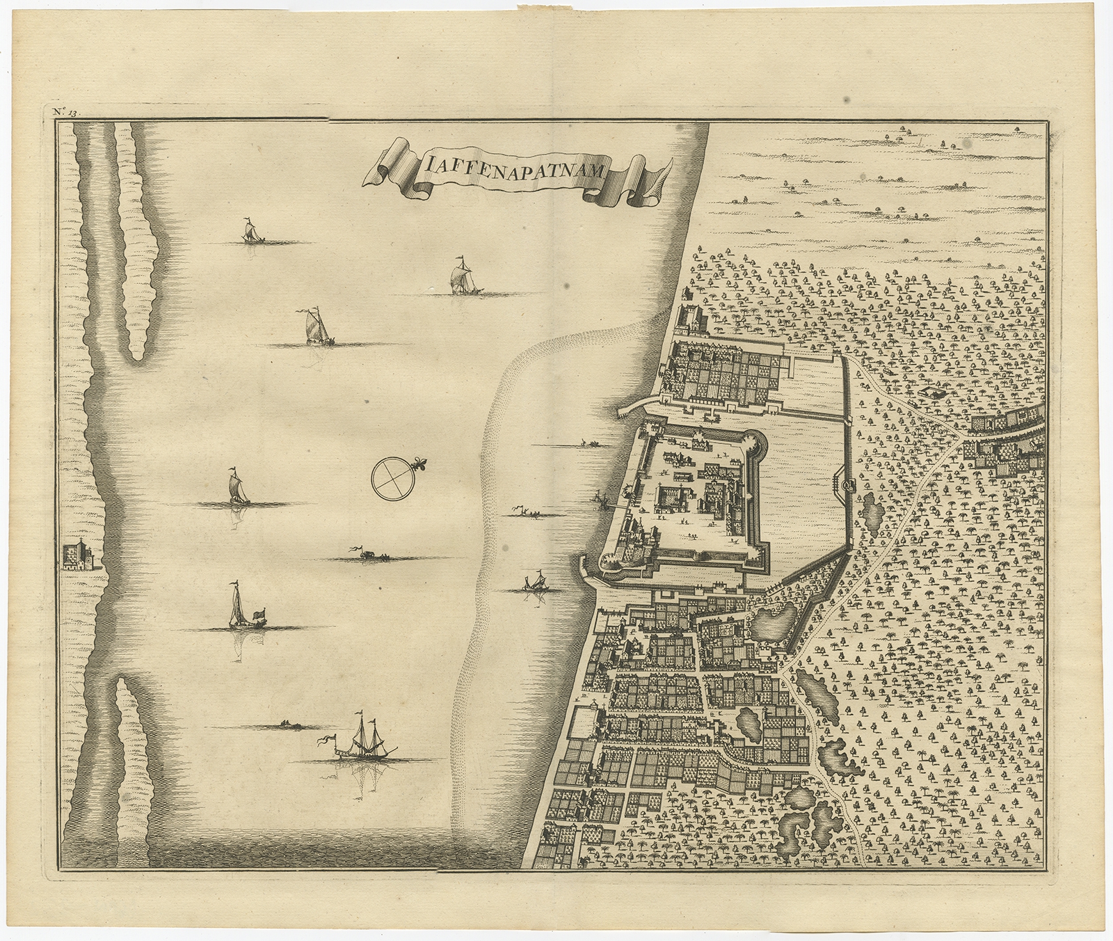 Iaffenapatnam - Valentijn (1726) $ 503.13 Availability: in stock Condition : Good, general age-related toning and some foxing. Please study image carefully. Date : 1726 Overall size : 39.5 x 33 cm. Image size : 36 x 27 cm. Description: Antique print titled 'Iaffenapatnam'. Bird's eye view of the city of Jaffnapatnam. Nowadays, Jaffna is the capital city of the northern province of Sri Lanka. This print originates from 'Oud en Nieuw Oost-Indiën' by F. Valentijn. Artists and Engravers: François Valentijn (1666-1727), a missionary, worked at Amboina from 1684 to 1694 and 1705 to 1713 and travelled extensively in the VOC's lands. |