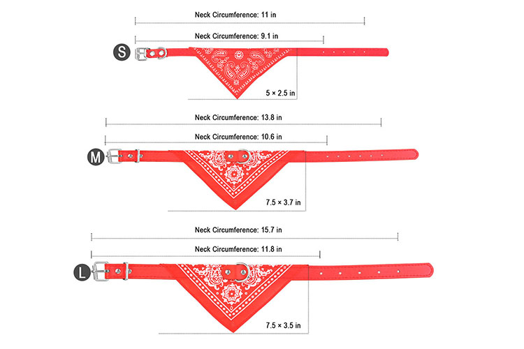 - Large size fits: 11.8-15.7 in/30-40cm (7.5" by 3.5" bandana/19cm by 9cm)