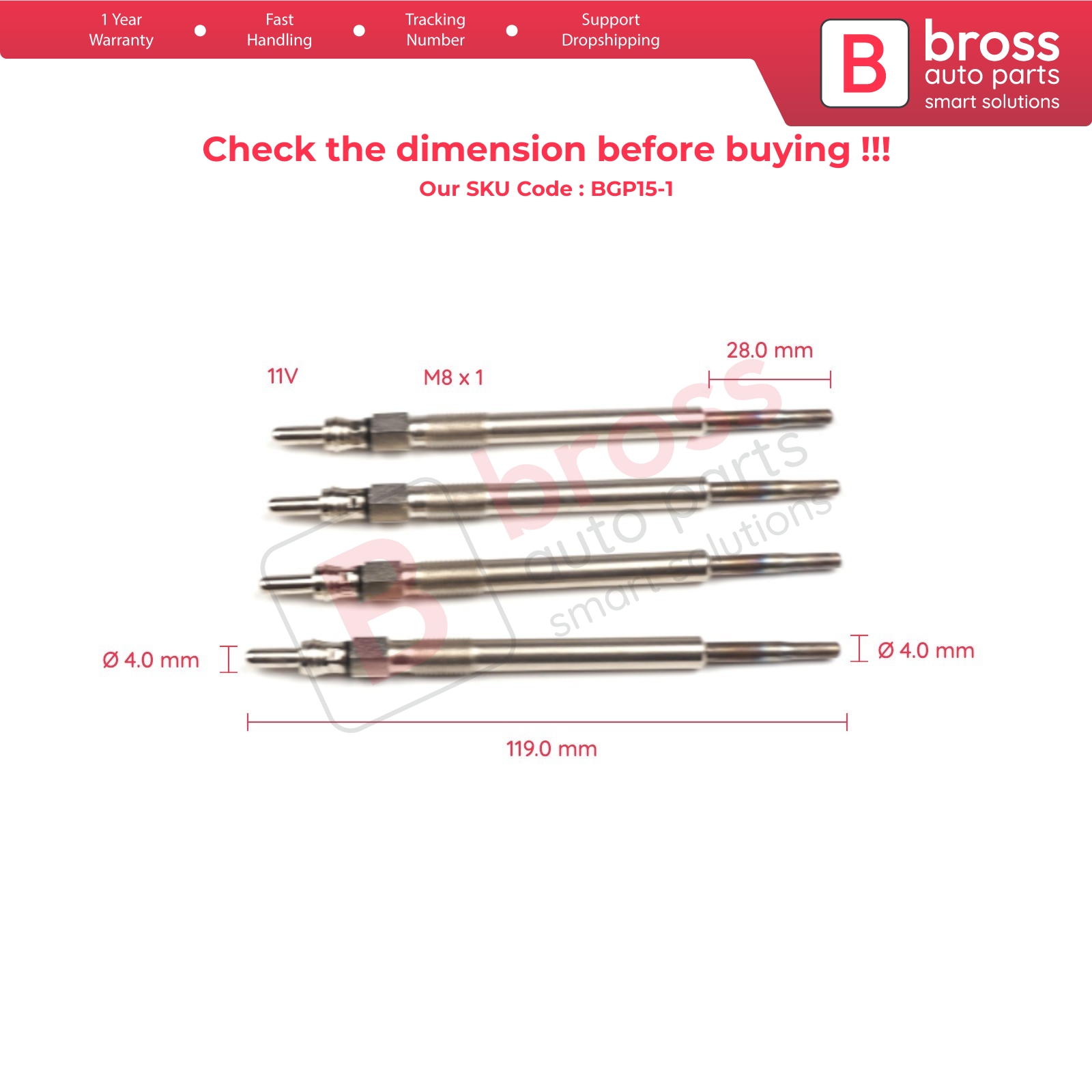 4 Pcs Heater Glow Plugs GX4119, 010027600 for Fiat Opel Suzuki Lancia.