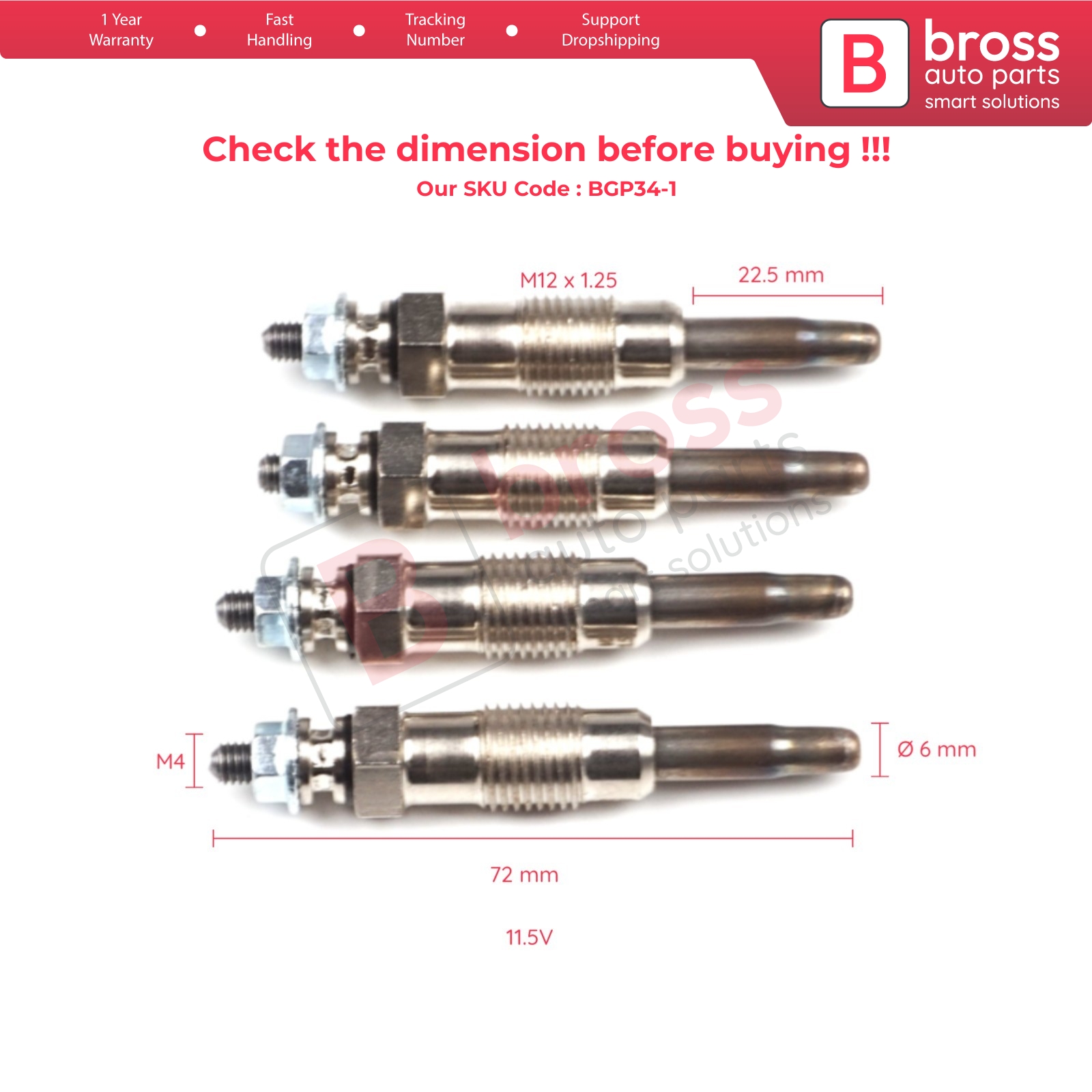 4 Pcs Heater Glow Plugs GX70, 11590001, GN858 for Mercedes Ssangyong Daewoo.