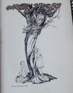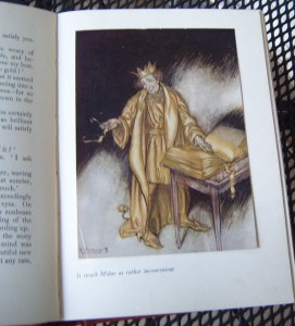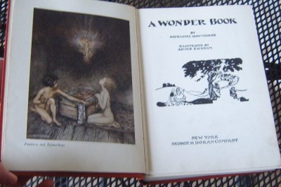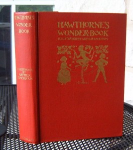 Nathaniel Hawthorne. A Wonder Book. George H. Doran. ND. [1922]. First U.S. Edition. Maroon-red cloth with gilt lettering and pictorial design to front. Gilt titling to spine. 16 mounted color plates. 8 full page illustrations, printed in several colors. Illustrated endpapers. 4to.
