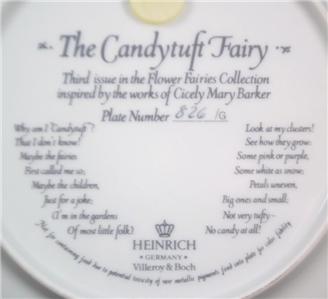 1980s NEW THE CANDYTUFT FAIRY PORCELAIN COLLECTOR PLATE WITH 24 KARAT GOLD RIM ~ NEVER DISPLAYED~IN MINT CONDITION!