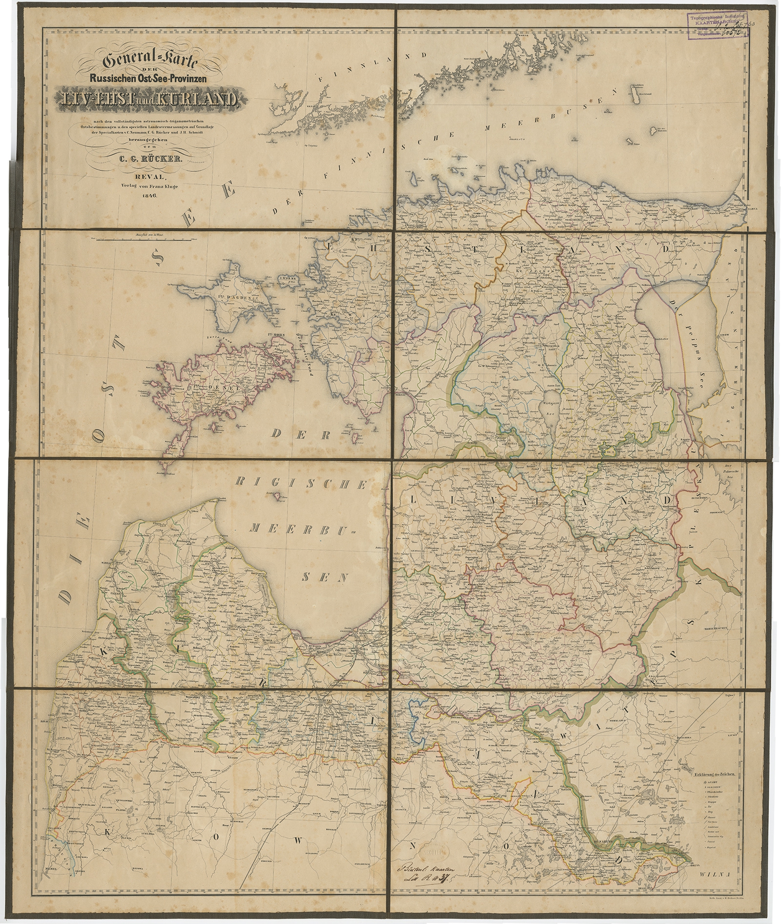 Antique Map of the Baltic States by Rücker (1846) $ 513.71 instead of Availability: in stock Condition : Good, age-related toning, some staining and foxing. Please study image carefully. Date : 1846 Overall size : 72 x 86 cm. Image size : 76 x 93 cm. Description: Antique map titled 'General Karte Russischen Ost See-Provinzen Liv-Ehst und Kurland'. Large folding map of the Baltic States, on linen. Artists and Engravers: Published by Franz Kluge, 1846. |