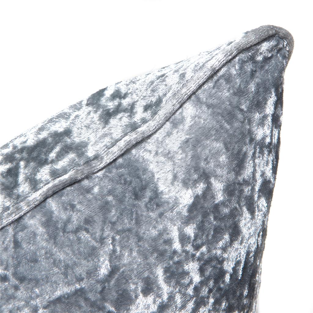 The crushed velvet is on both sides of the cushion cover. They have a zip opening along one side, lovingly finished with piped edges and are machine washable.