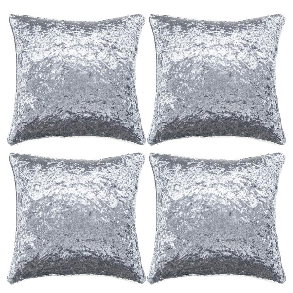 Set of 4 Crushed Velvet Cushion Covers Luxury Piped Edges 18 inch 45 cm Square