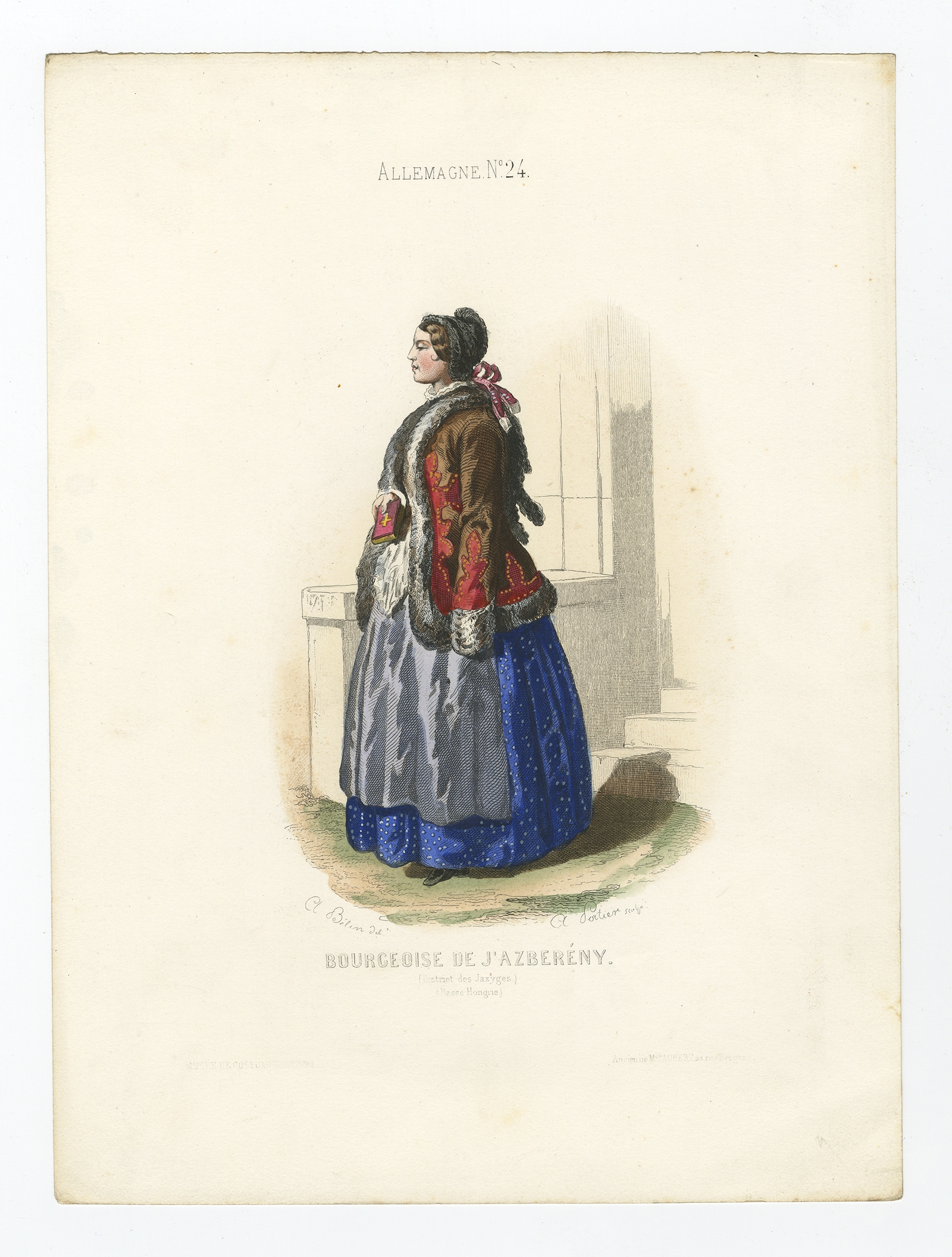 Antique Print of a Bourgeoise in folk costume by Aubert (1850) $ 100.63 Availability: in stock Condition : Very good, please study image carefully. Date : 1850 Overall size : 20.8 x 28.1 cm. Image size : 10.5 x 20.5 cm. Description: Antique costume print titled 'Bourgeois de J'Azberény'. Old print depicting a Bourgeoise in folk costume from Jászsági, lower Hungary. This print originates from 'Costumes Moderne (Musée de Costumes). Artists and Engravers: Published in Paris: Ancienne Maison Aubert. |