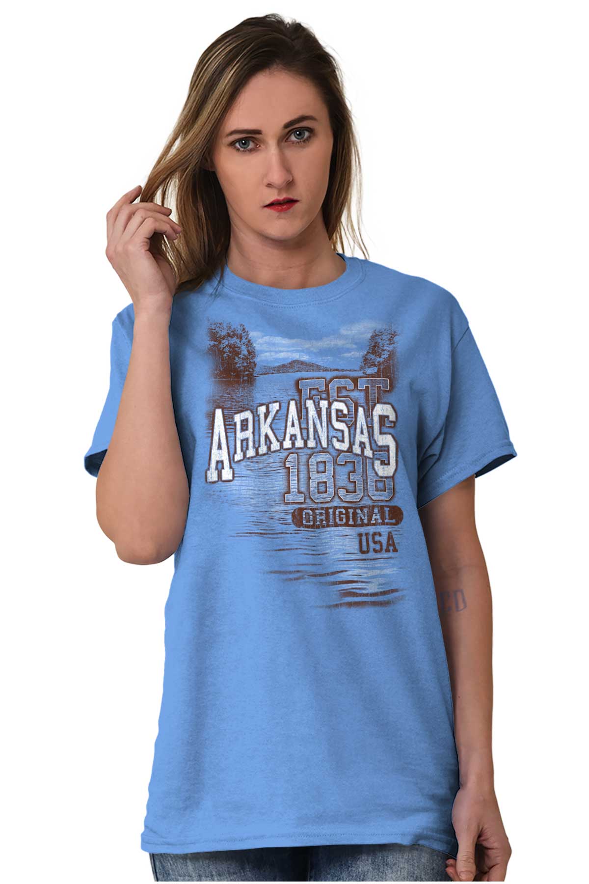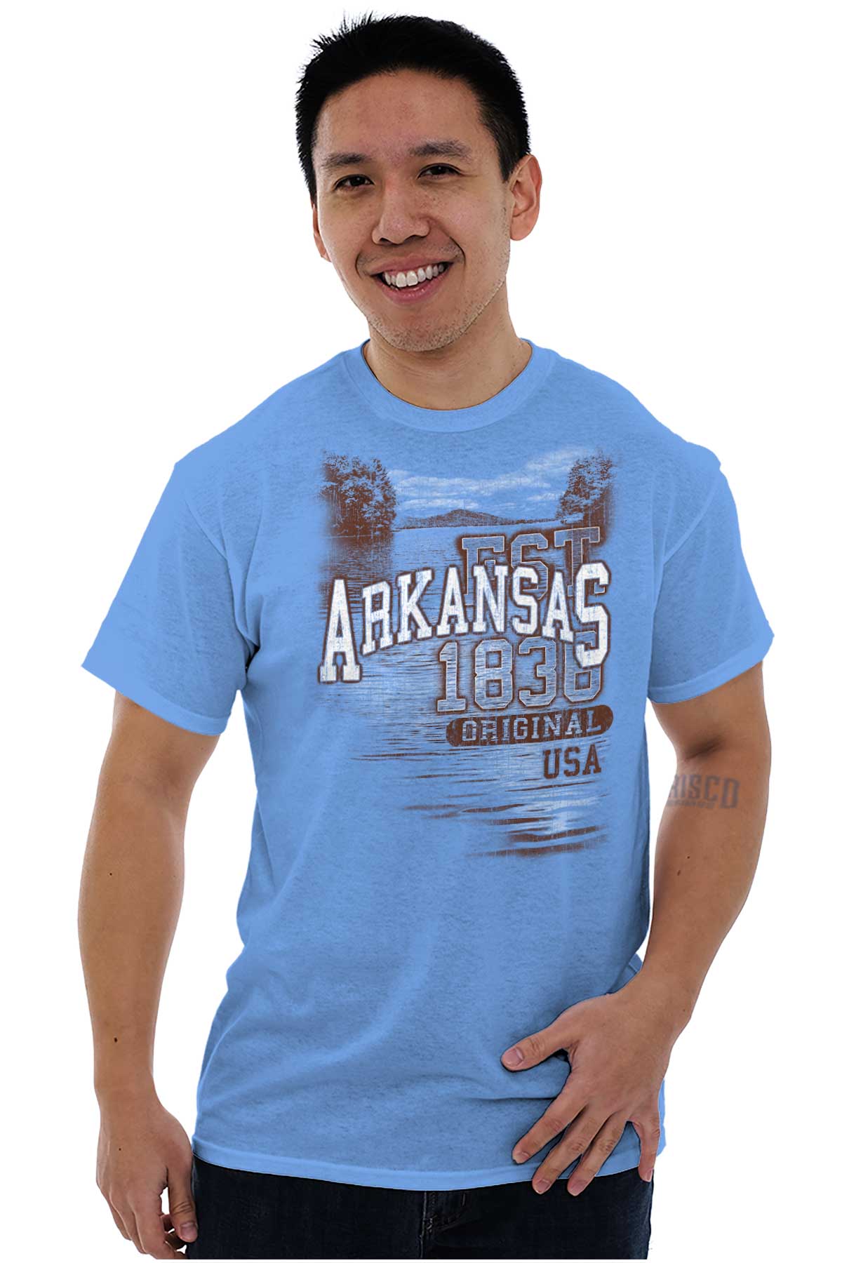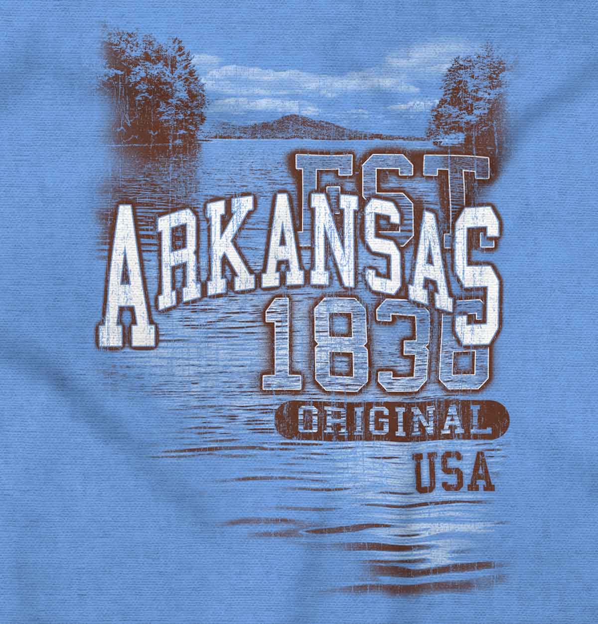 Feel the serenity of the lakes, trees, and all the nature in Arkansas . Just like the rest of America, this state has beauty and nature in its own special way. This T Shirt is your camping and fishing companion perfect for all outdoor adventures! If you know someone who enjoys the great outdoors of Arkansas this makes the perfect gift!