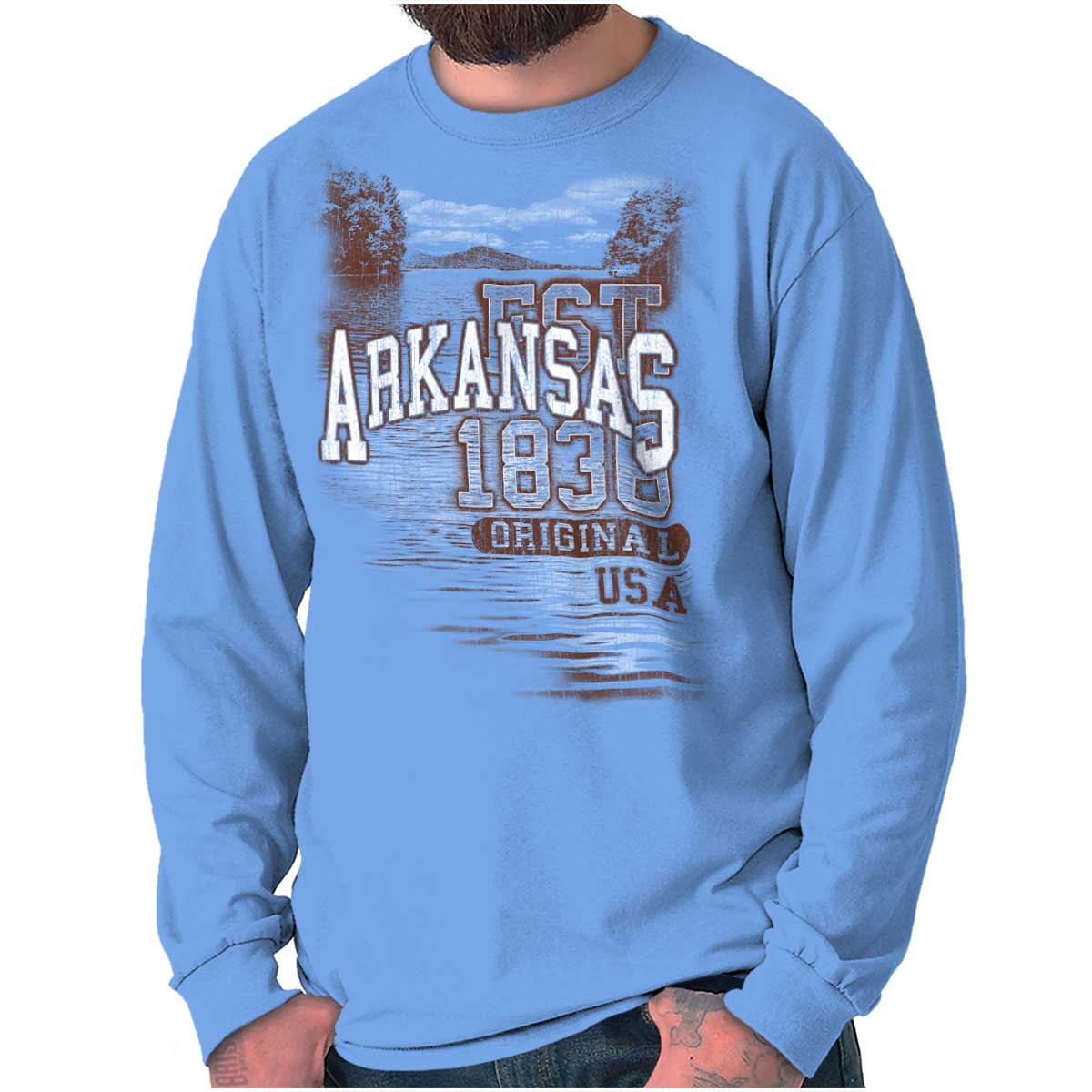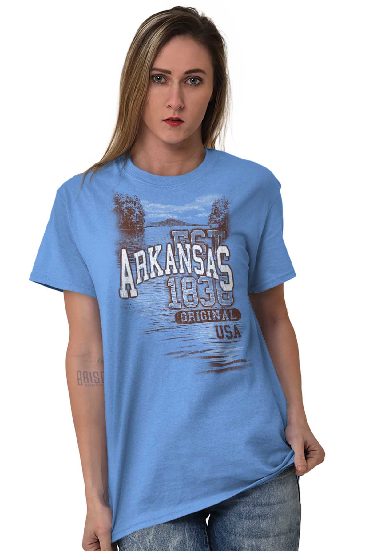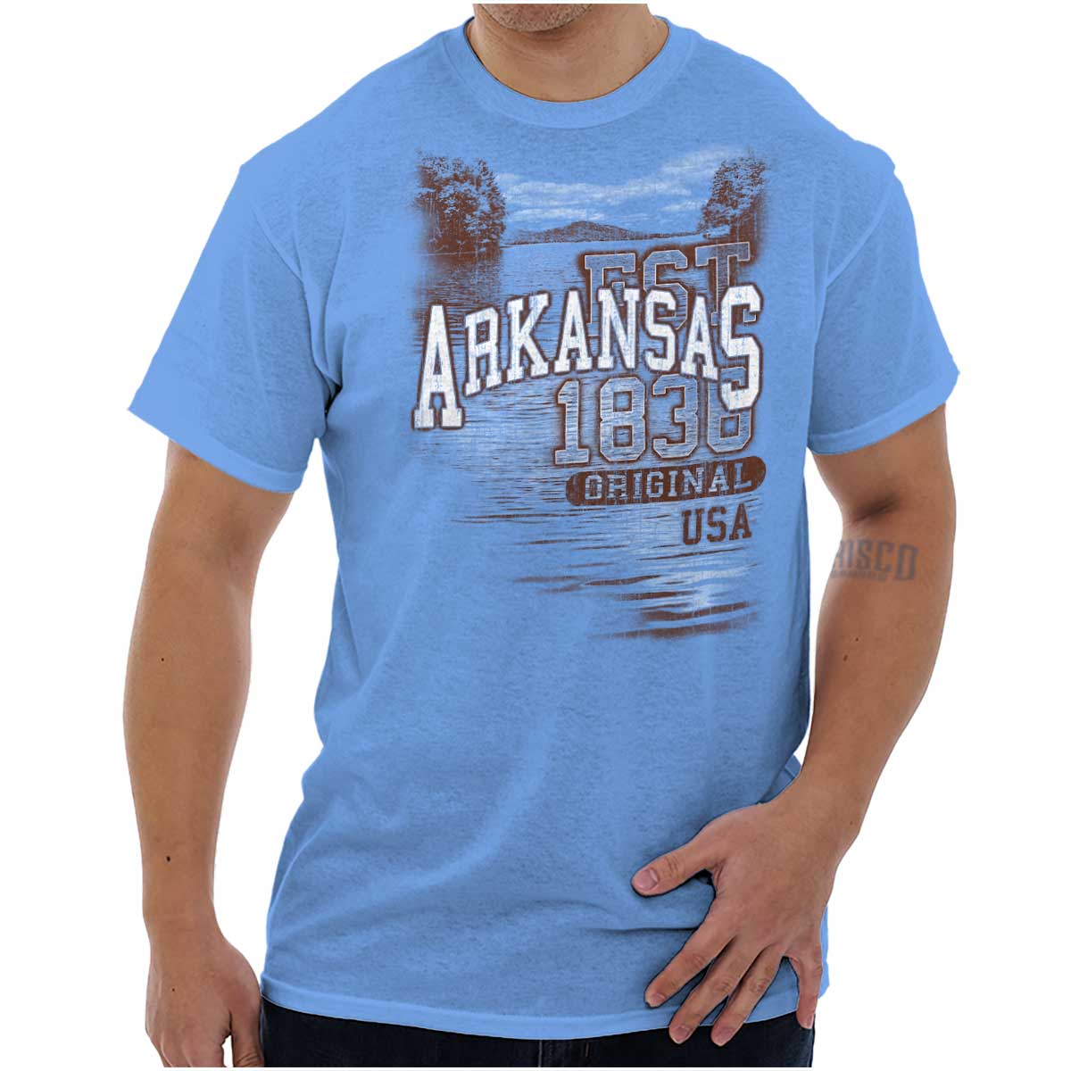 Feel the serenity of the lakes, trees, and all the nature in Arkansas . Just like the rest of America, this state has beauty and nature in its own special way. This T Shirt is your camping and fishing companion perfect for all outdoor adventures! If you know someone who enjoys the great outdoors of Arkansas this makes the perfect gift!