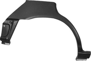 This piece is made to repair damage around the rear wheel. It starts at the bottom of the vehicle and goes around the wheel back to the bottom again. This item is intended to be welded in to replace the rust damaged portion.