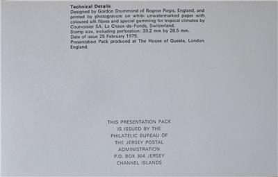 Mint Condition: The MNH loose stamps are backed by black card and covered with a plastic film from which they can easily be removed. This is housed in a folded card sleeve (as seen at top of photograph) Both the picture card sleeve and the inner card have two hole punches to the left side carried out by JERSEY POST OFFICE PHILATELIC BUREAU so that the pack can be stored in a binder.