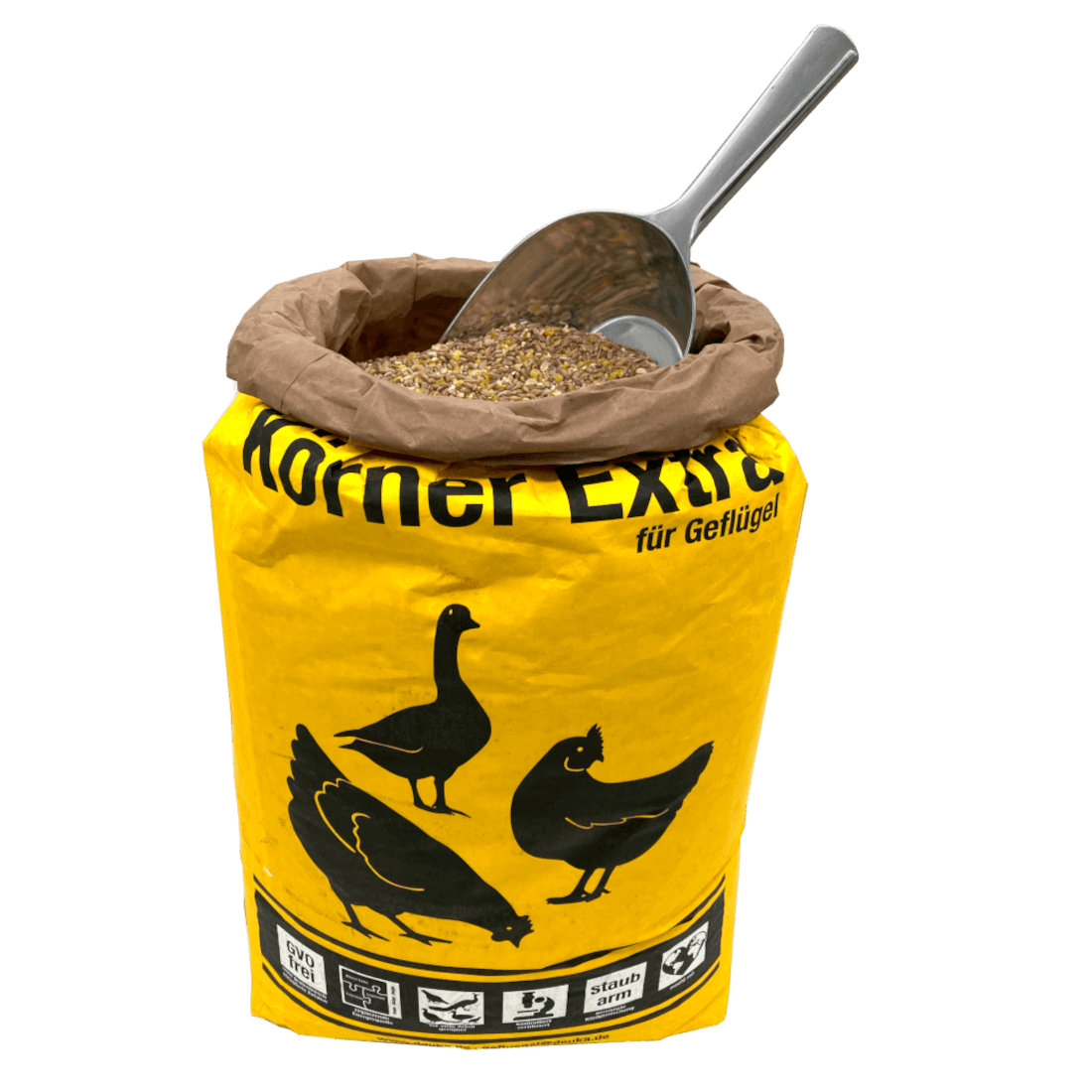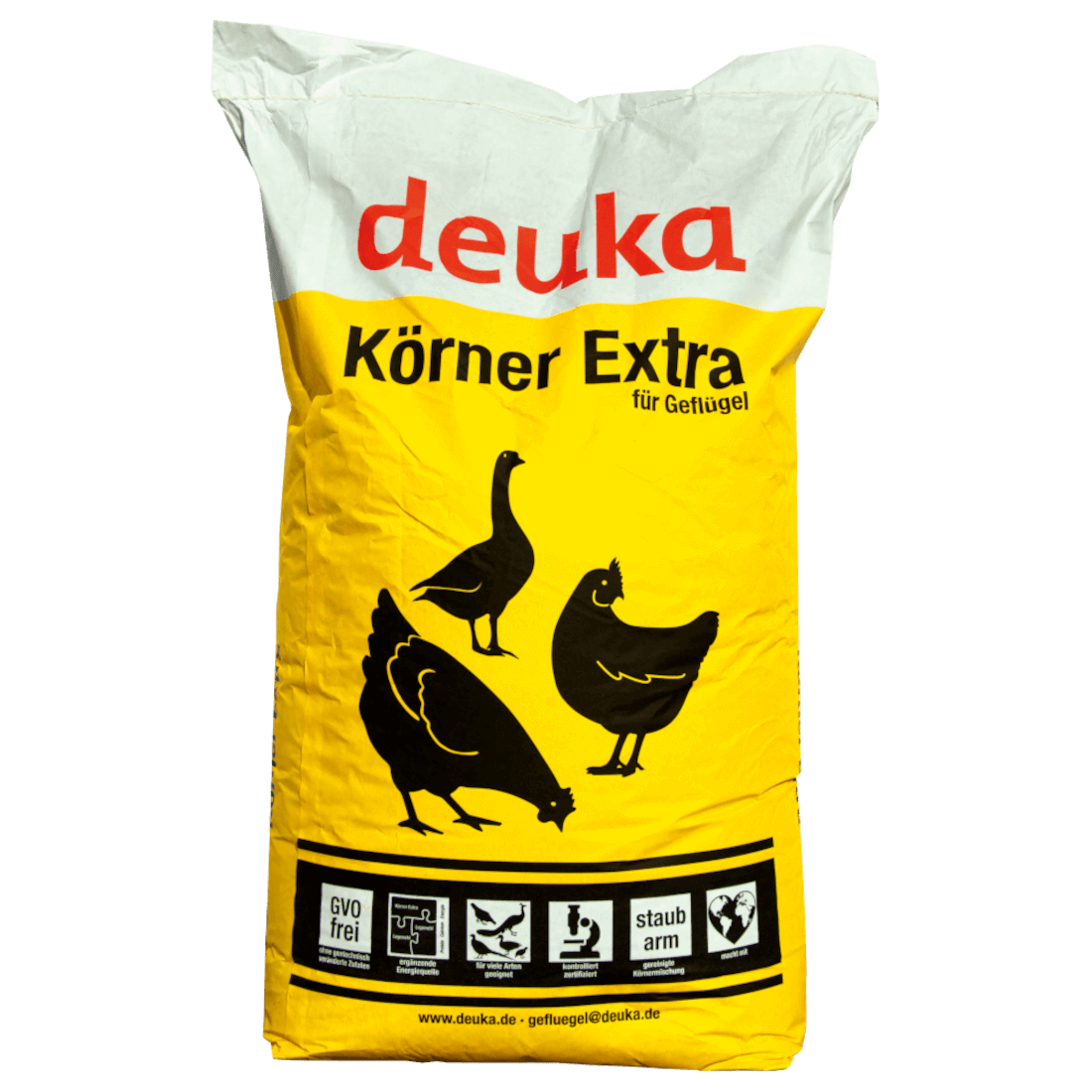 Deuka Körner Extra Körnerfutter für Legehennen ist ein Ergänzungsfuttermittel für Geflügel bestehend aus Weizen, gebrochenem Mais, Gerste und Muschelschrot. Das Körnerfutter wird während der Legeperiode bestenfalls im Verhältnis 1:2 mit Deuka Legemehl gemischt und verfüttert.
