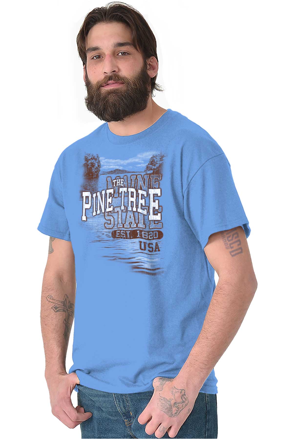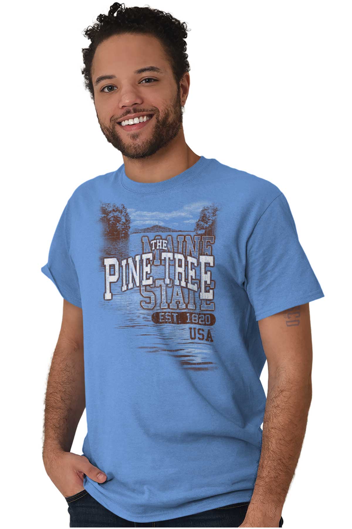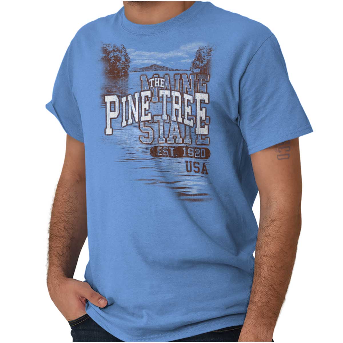 Feel the serenity of the lakes, trees, and all the nature in Maine . Just like the rest of America, this state has beauty and nature in its own special way. This T Shirt is your camping and fishing companion perfect for all outdoor adventures! If you know someone who enjoys the great outdoors of Maine this makes the perfect gift!