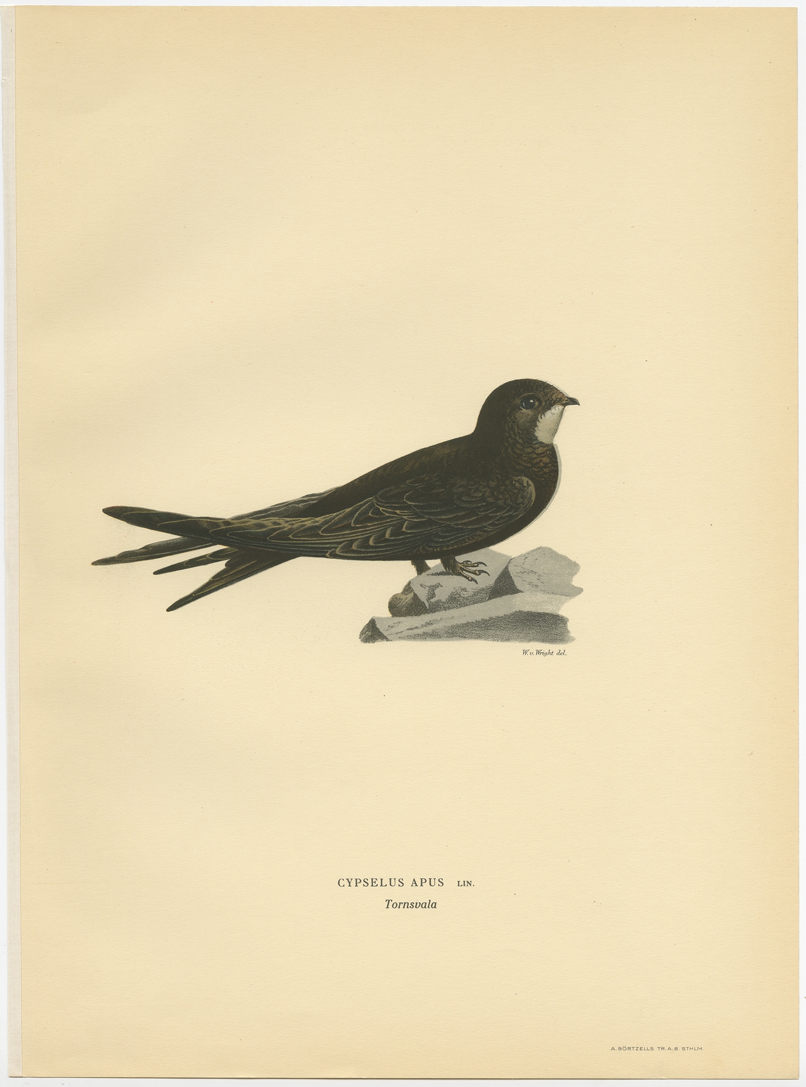 Antique Bird Print of the common swift by Von Wright (1927) $ 77.63 Availability: in stock Condition : Very good, general age-related toning. Please study image carefully. Date : 1927 Overall size : 28 x 37.5 cm. Image size : 18 x 10 cm. Description: Antique bird print titled 'Cypselus Apus'. Old bird print depicting the common swift. This print orginates from 'Svenska Foglar Efter Naturen Och Pa Stenritade' by Magnus von Wright. Artists and Engravers: Printed in Stockholm. Magnus von Wright (1805 - 68) was the first taxidermist working with the vertebrate collections of Helsinki University. Starting out as a taxidermist in the 1820's, he stuffed birds for Societas pro Flora et Fauna Fennica, the oldest scientific society in Finland, and in 1845, became taxidermist at the university's zoological museum. Von Wright made several study journeys to Stockholm and St. Petersburg, and even wrote a short manual on how mount birds. Though a skilful taxidermist, his reputation, like that of his two brothers, Wilhelm and Ferdinand, rests on his skill as a zoological illustrator. In 1859 he published the first handbook on Finnish birds. |