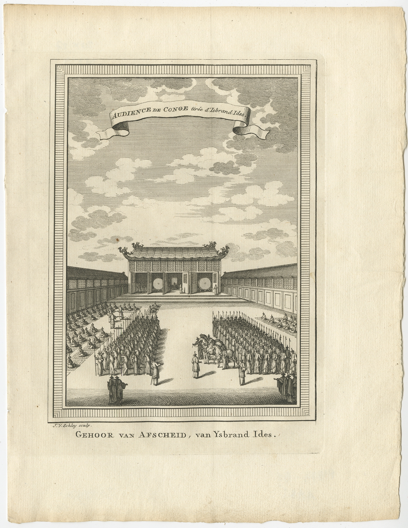 Antique Print of a Guard of Honour by Van Schley (1749) $ 78.26 instead of Availability: in stock Condition : Very good, general age-related toning. Minor wear, blank verso. Please study image carefully. Date : 1749 Overall size : 20 x 27 cm. Image size : 14 x 19 cm. Description: Antique print titled 'Audience de Conge tirée d'Isbrand Ides - Gehoor van Afscheid, van Ysbrand Ides'. Copper engraving of a guard of honour during a farewell ceremony, described by Eberhard Isbrand Ides (Evert Ysbrants (Ysbrandsszoon) Ides, 1657-1708), a Danish traveller and diplomat. This print originates from a Dutch edition of 'Histoire Géneral des Voyages' titled 'Historische beschryving der reizen, of Nieuwe en volkoome verzameling van de aller-waardigste en zeldsaamste zee- en landtogten (..)' by Pieter de Hondt. Artists and Engravers: The original volumes of 'Histoire Géneral des Voyages' were written by Antoine François Prévost d'Exiles, a French author, novelist, theologian, natural historian, and a priest of the Jesuit and Benedictine orders, but continued by numerous other authors after Prévost's death. Jakob van der Schley (26th July 1715 - 12th February 1779), also known as Jan von Schley or Jacobus van Schley, was a Dutch engraver and draughtsman. An apprentice of the French engraver Bernard Picart, he is best known for his engravings of the majority of plates in the Dutch edition of 'l'Histoire Géneral des Voyages.' Despite producing mainly maps and views for this work, van der Schley was predominantly a portrait artist and literary illustrator. |
