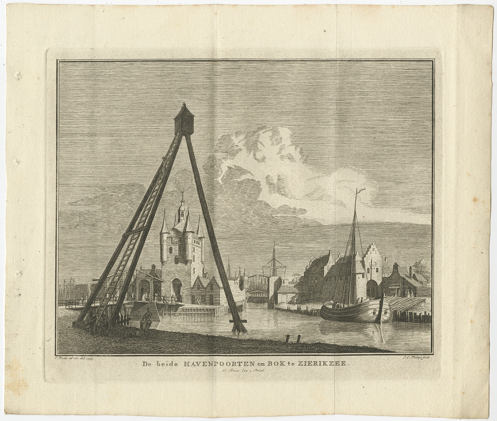 Antique Print of the Port of Zierikzee by Tirion (1751) $ 108.68 Availability: in stock Condition : Very good, general age-related toning. Minor wear, blank verso. Please study image carefully. Date : 1751 Overall size : 25 x 21.5 cm. Image size : 19.5 x 15.5 cm. Description: Antique print titled 'De beide Havenpoorten en Bok te Zierikzee'. Copper engraving of the port of Zierikzee, the Netherlands. This print originates from 'Hedendaagsche historie of tegenwoordige staat van alle volkeren (..) en wel in 't byzonder handelende van Zeeland' by Th. Salmon. Artists and Engravers: Published by I. Tirion. |