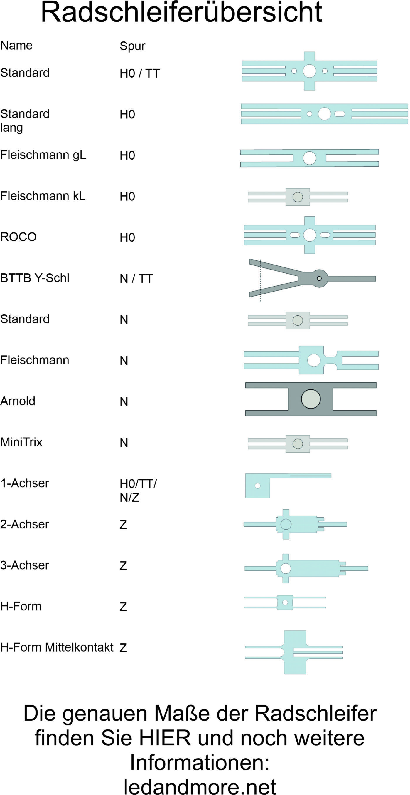 10 Stück Radschleifer für Spur Z / N / TT / H0
