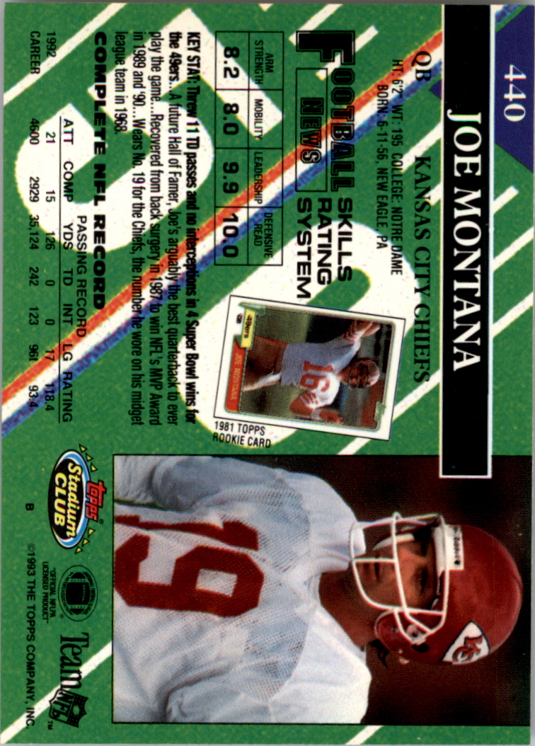 1993 Stadium Club Super Teams Super Bowl #440 Joe Montana - NM-MT