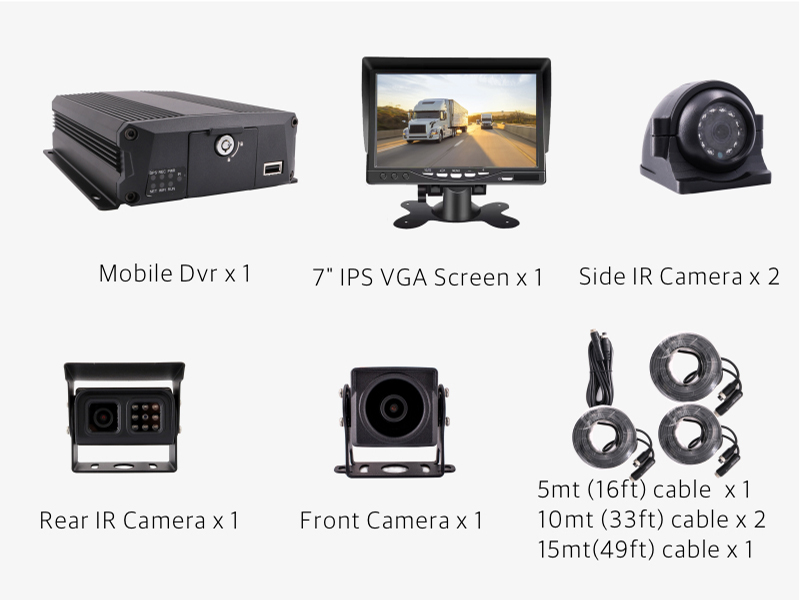 1 x Accessory kit for MDVR.(includes power cable, key, av adapter cable, 5ft IR extention cable, 10ft gps antenna, 10ft wifi antenna, 10ft 4G antenna, user manual in English)