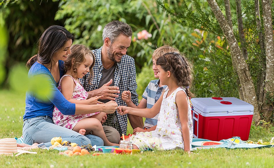 En verano, nuestro refrigerador (40 L) mantiene las bebidas y alimentos fríos y frescos. Debido a su ligero peso neto de aprox. 6.8 kg y a los conectores de 230 V y 12 V, esta nevera es la compañera perfecta para viajar, acampar o para viajes más largos por carretera.