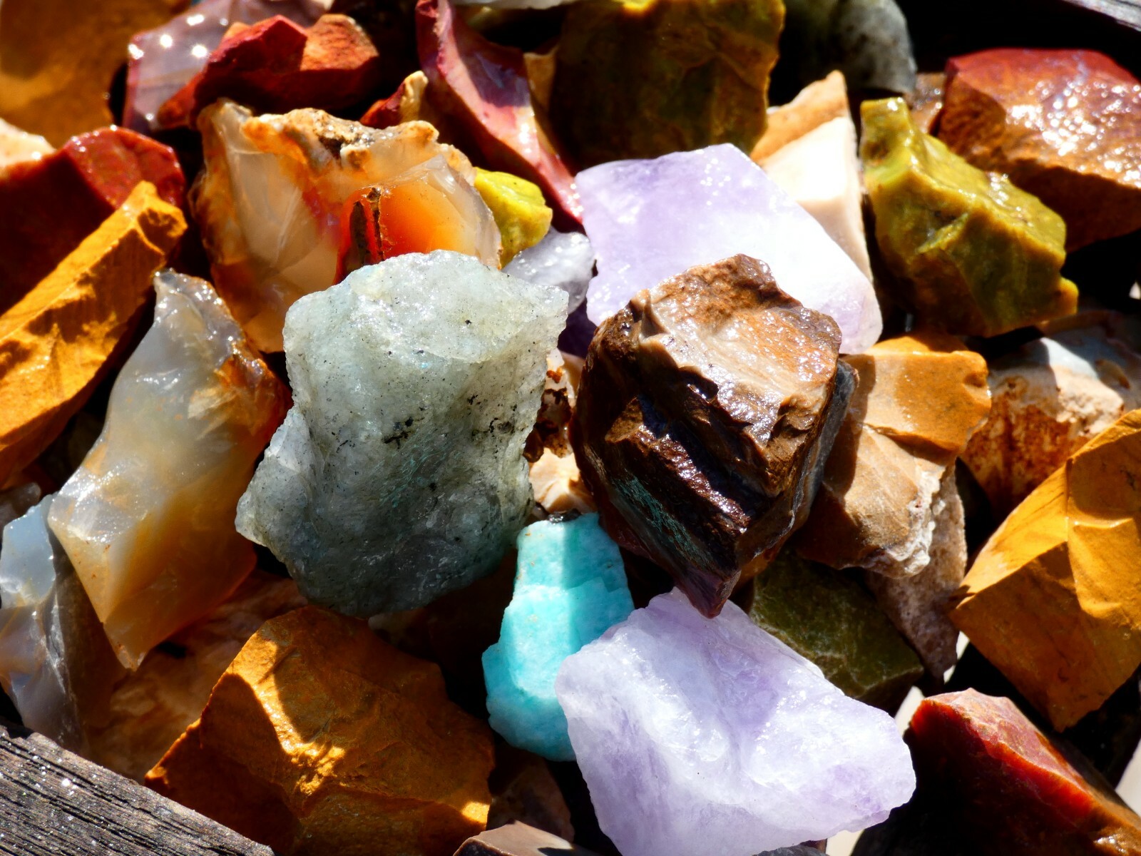 This Listing is for 2000 carats of Natural Rough Rocks. Buy one lot or more than one. Nice Gems. They are easy to polish and look great in Jewelry. Perfect size for tumbling.