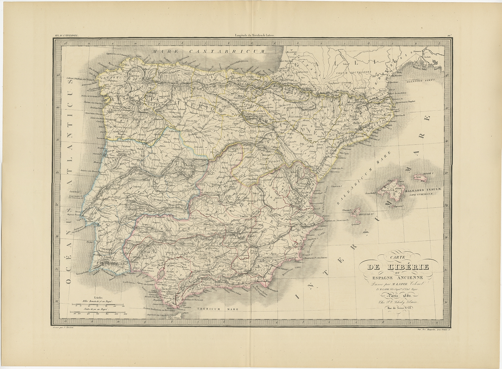 Antique Map of Iberia by Lapie (1842) $ 447.22 Availability: in stock Condition : Very good, general age-related toning. Original folding line, blank verso. Please study image carefully. Date : 1842 Overall size : 68 x 50.5 cm. Image size : 54.5 x 40.5 cm. Description: Antique map titled 'Carte de l'Ibérie ou Espagne Ancienne'. Map of Iberia, or the Iberian Peninsula. This map originates from 'Atlas universel de géographie ancienne et moderne (..)' by Pierre M. Lapie and Alexandre E. Lapie. Artists and Engravers: Pierre M. Lapie was a French cartographer and engraver. He was the father of cartographer Alexandre Emile Lapie. |