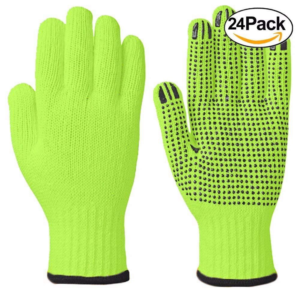 Wideskall High Visibiliby Large Cotton PVC Dots Grip String Knit Safety Work Glove