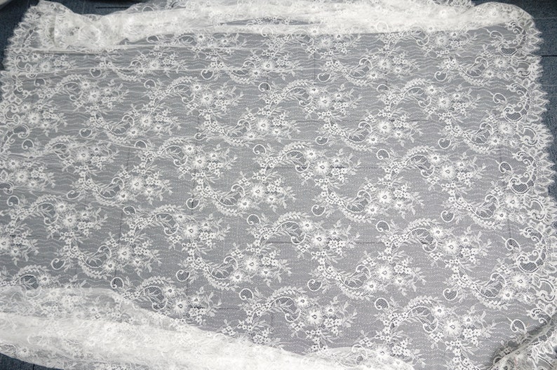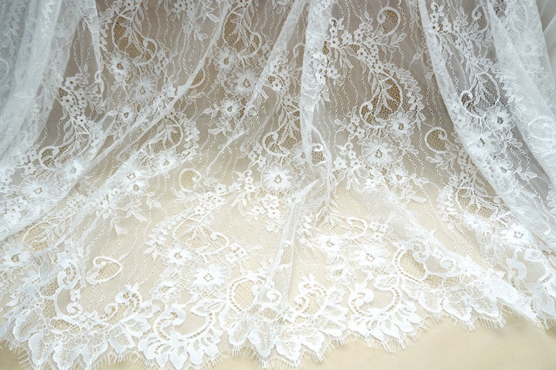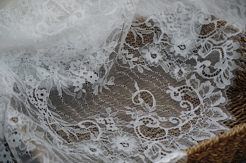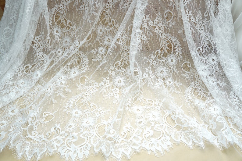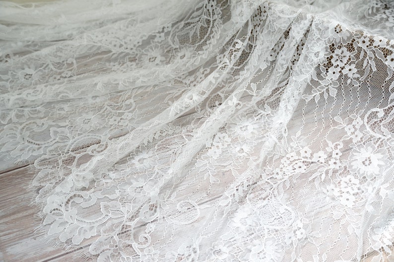 Delicate French lace fabric, has scalloped edging with eyelashes on both sides, soft materials fabric