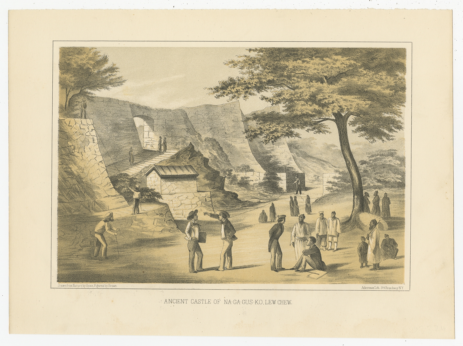 Antique Print of the Ancient Castle of Nagagusko by Hawks (1856) $ 104.16 Availability: in stock Condition : Good, general age-related toning. Small hole next to image. Blank verso. Please study image carefully. Date : 1856 Overall size : 29 x 21 cm. Image size : 22.5 x 15.5 cm. Description: Antique print titled ‘Ancient Castle of Na-Ga-Gus-Ko, Lew Chew‘. View of the ancient castle of Nagagusko, Ryukyu Islands, Japan. This print originates from 'Narrative of the expedition of an American squadron to the China seas and Japan, performed in the years 1852, 1853, and 1854, under the command of Commodore M.C. Perry (..)' by Francis L. Hawks. Artists and Engravers: Lithographs after W. Heine and E. Brown. |