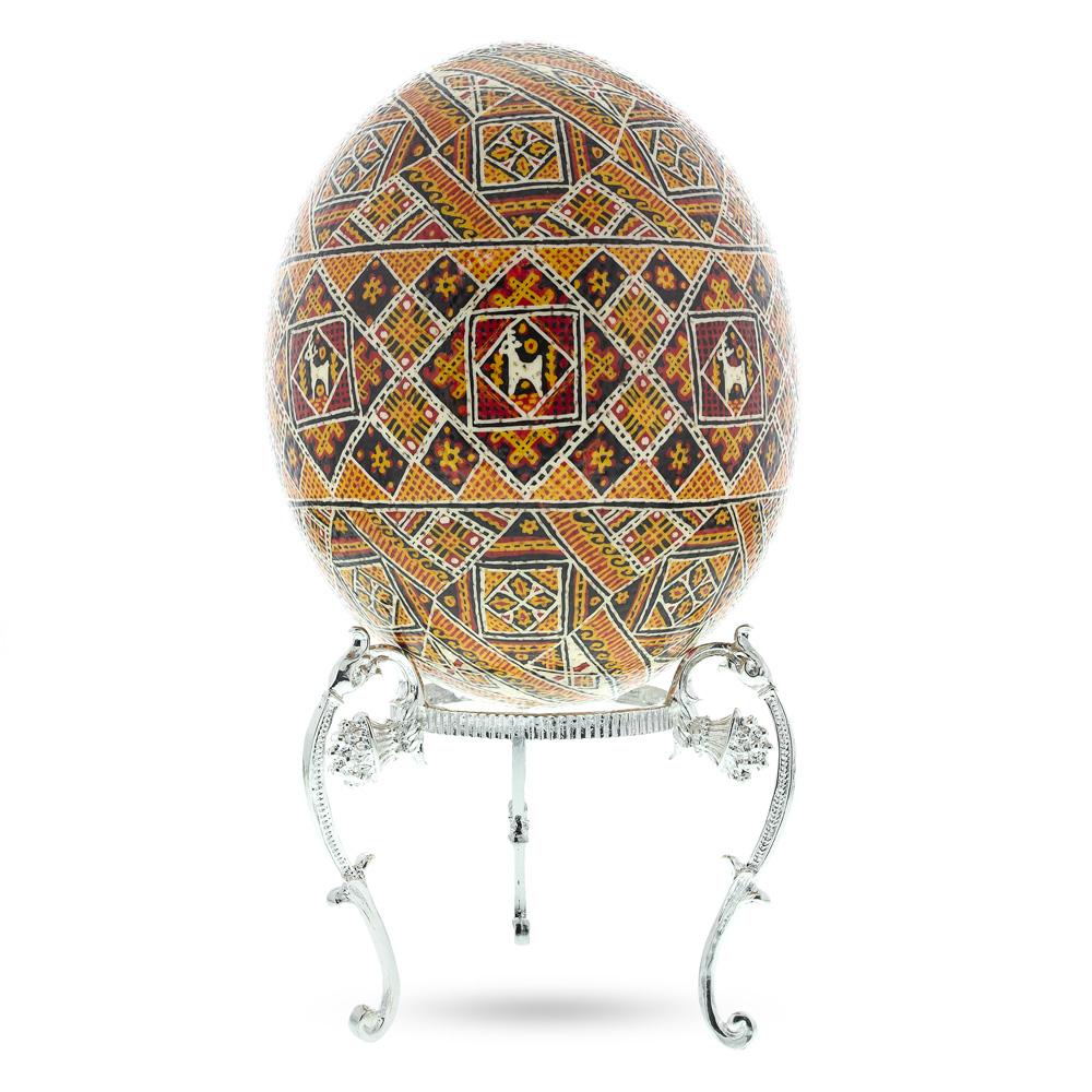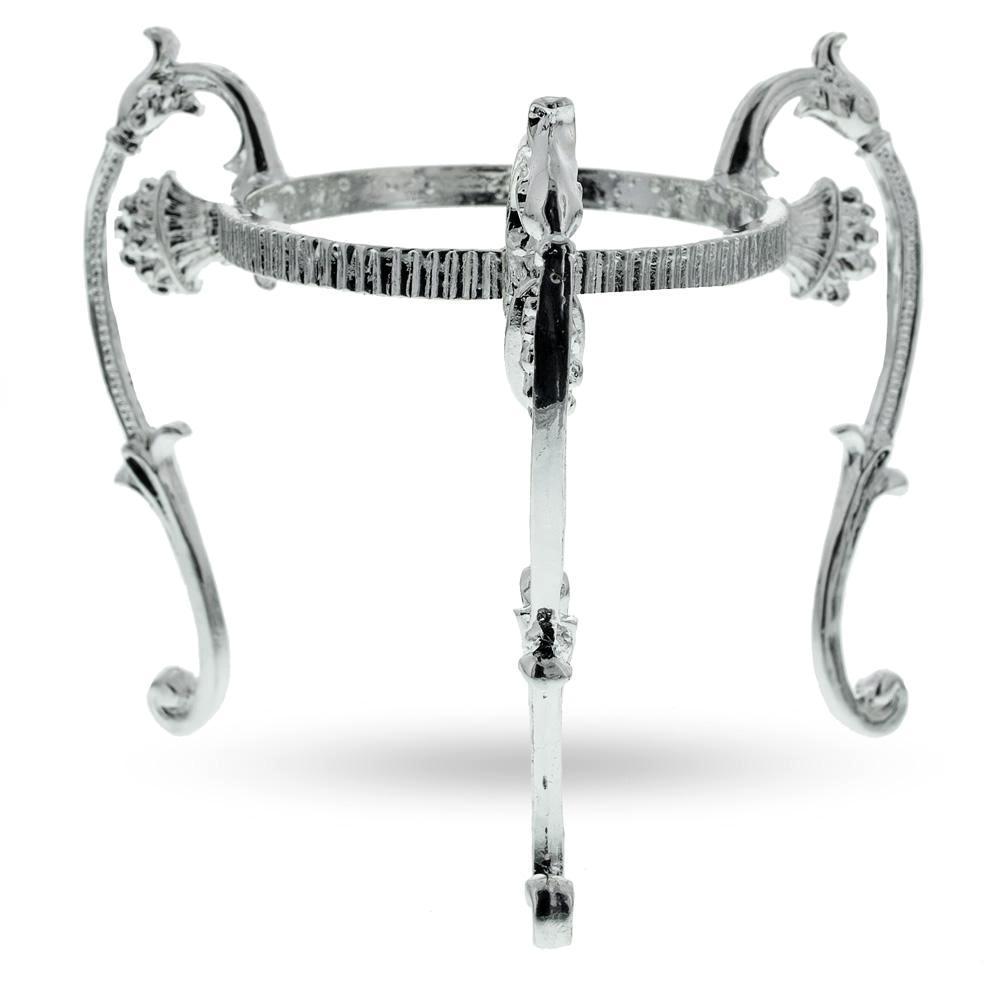 Antique Style Silver Tone Metal Ostrich Egg Sphere Stand Holder Display 3.6 Inches