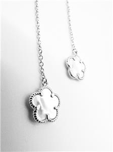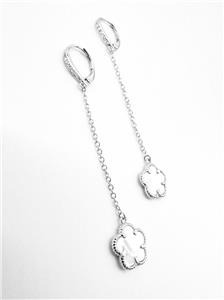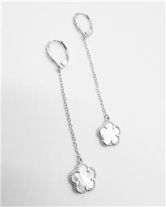 GORGEOUS 18kt White Gold Plated Chain Mother of Pearl Shell 5 Petal Flower Crystals Leverback Dangle Earrings