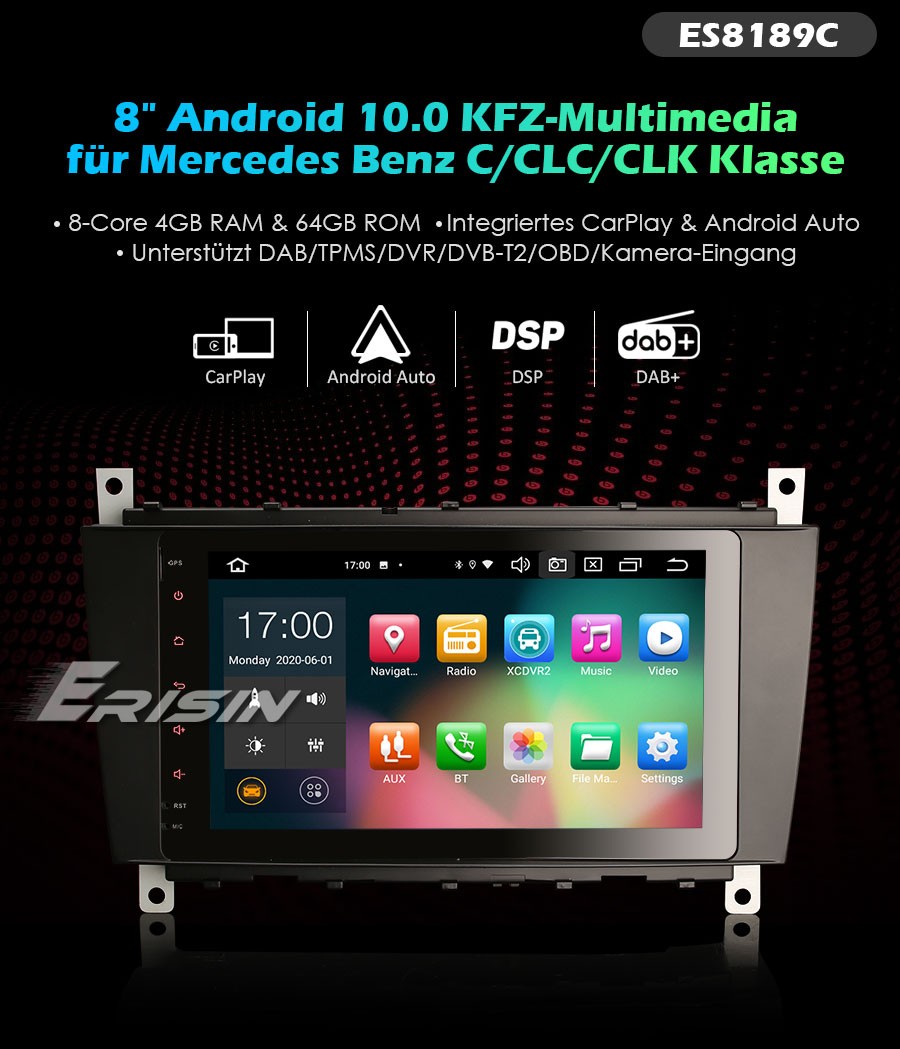 ES8189C 8" Acht-Kern Android 10.0 Auto Multimedia System CarPlay & Auto GPS TPMS/DVR/DAB+/DTV-IN...