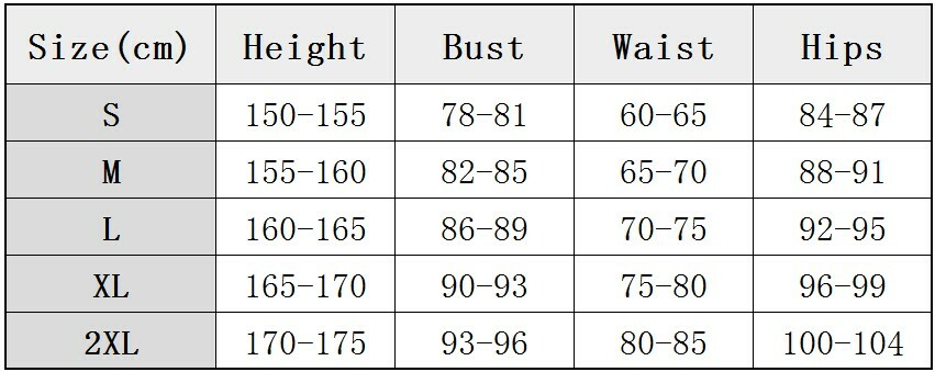 Notice: This costume is asia size and inner part is slim fit, we suggest you buy 2 size up for AU size, if you are overweight and don't sure which size suit you, pls contact me!!! Notes: 1.There might be slightly difference in color, because of the computer monitor settings. 2.With the difference in the measurement method, please allow 1-3cm in the size deviation.
