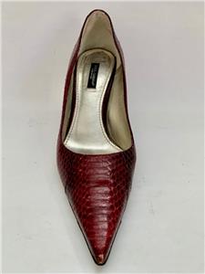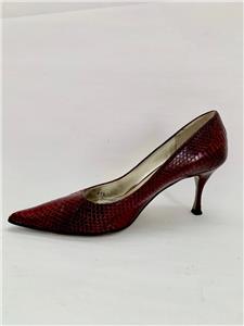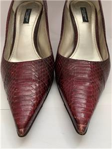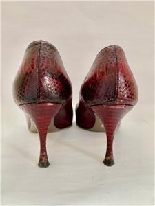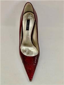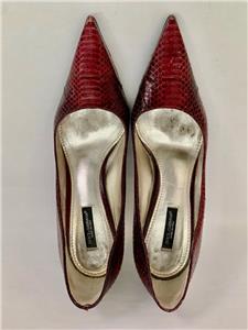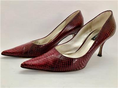 Sexy sleek lines for this lovely cranberry ombre snakeskin fashion pumps from Dolce & Gabbana of Italy. Gorgeous colors in wonderful material, just the tips need little attention, otherwise in excellent condition... Timeless style with palest of metallic gold leather lining and footbed with gentle padding, beautiful shoes.