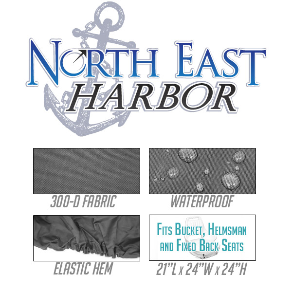 Deluxe Boat Seat Cover keeps your seats clean, dry, and looking like new by protecting it from outdoor elements like wind, rain, snow, dust, and dirt. This 300 Denier Polyester Seat Cover is water resistant and has Sun coated protection. The heavy-duty shock cord hem ensures a tight, secure fit. FEATURES INCLUDE: Designed for Helm / Helmsman / Bucket Seats - 21"L x 24"W x 24"H PACKAGE INCLUDES: