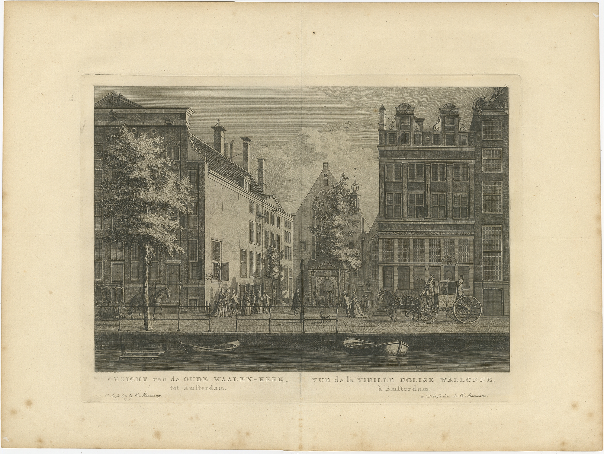 Antique Print of the 'Oude Walenkerk' in Amsterdam by Maaskamp (1805) $ 140.64 Availability: in stock Condition : Very good, general age-related toning. Original folding line, blank verso. Please study image carefully. Date : 1805 Overall size : 49 x 36.5 cm. Image size : 34 x 23 cm. Description: Antique print titled 'Gezicht van de Oude Waalen-Kerk, tot Amsterdam - Vue de la vieille Eglise Wallonne, à Amsterdam'. View of the 'Oude Walenkerk' in Amsterdam, the Netherlands. This print originates from 'Nieuwe atlas, van de voornaamste gebouwen en gezigten der stad Amsterdam (..)', 1805. Artists and Engravers: Published by E. Maaskamp. |