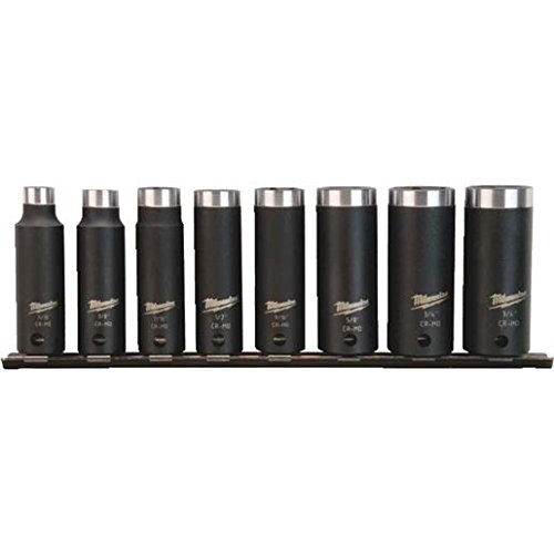 8 Piece Shockwave Impact Duty Deep Well Socket Set with 3/8" Hex Diameter Milwaukee shockwave impact duty sockets are engineered for extreme durability and up to 10x life. Made from proprietary steel and heat treated to control hardness, the shockwave impact duty sockets feature thin wall construction for access in tight spaces and 6 point deep wells for unyielding bit engagement. Broadly targeting cordless users, the shockwave impact duty accessory line is not only ideal for heavy duty impact applications, but delivers a full system solution for all the user's drilling and fastening needs. Features: 8 Pieces 3/8" Hex Diameter Includes 5/16", 3/8", 7/16", 1/2", 9/16", 5/8", 11/16", and 3/4" Deep Well Sockets, and a Socket Rail Since its founding in 1924, Milwaukee has focused on a single vision: To produce the best heavy-duty electric power tools and accessories available to the professional user. Today, the Milwaukee name stands for the highest quality, durable and reliable professional tools money can buy.