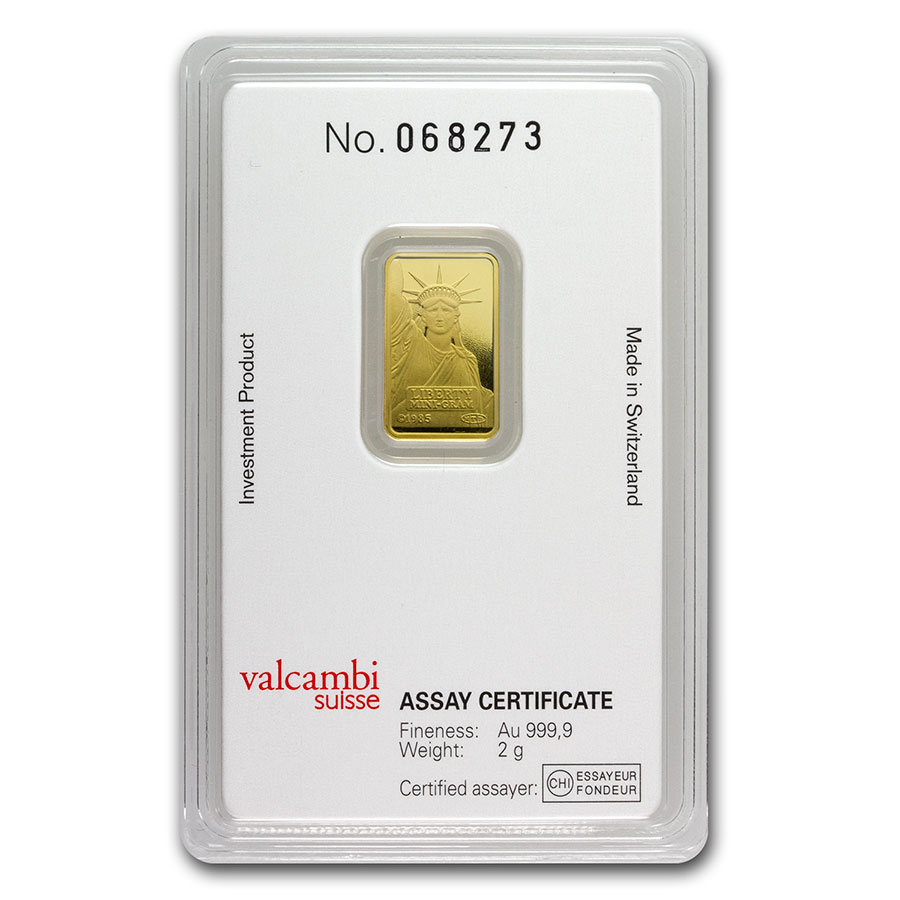 Bar Highlights: - Contains 2 grams (.06430 oz) of .9999 fine gold.