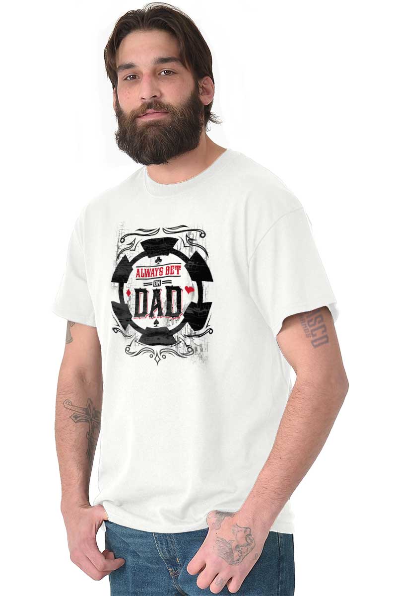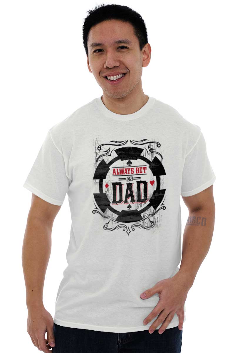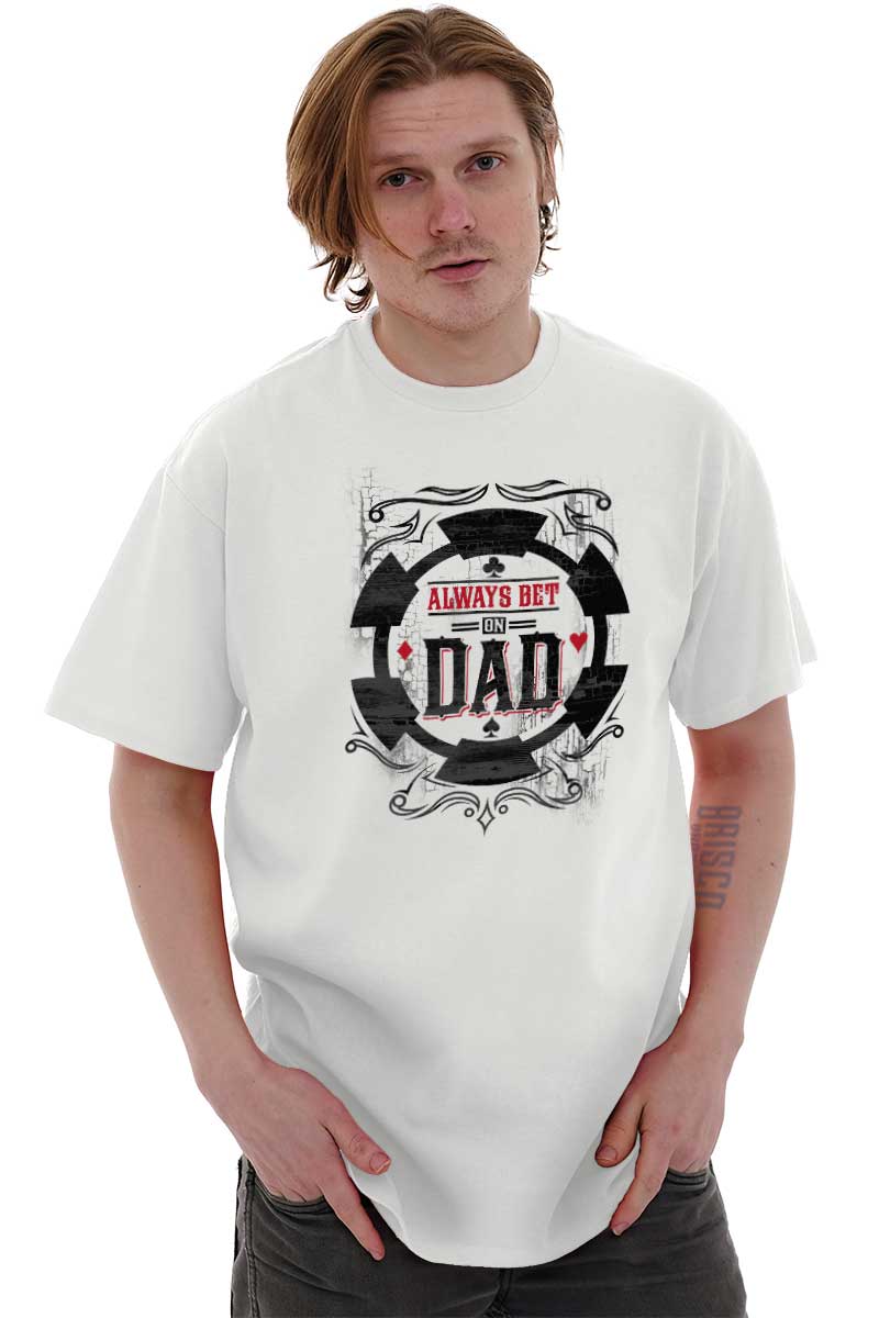 You are at the roulette wheel and remember the old saying – “Always bet on black”.Red or black: your odds are the same. But in life, there is always one safe bet. “Always Bet on Dad”. He is the safest bet there is in life. There is no luck on the spin of the wheel or the draw of the cards. He does not need the best poker face or to blow on your dice to keep the snake eyes away. Just being Dad is enough to be the safest bet there is in life. Let him show it and show that you know he is never a hand that you would fold with this cool T shirt.