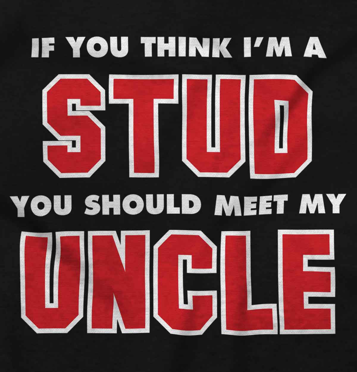 If you think I'm a stud then boy oh boy you should really see my uncle. Not only is he the coolest guy that I know but he's also super hot and awesome. He's the coolest human being and I love hanging out with him. I know that anyone that hangs out with him will love him because he's so darn cool. We throw the football together and play sports all the time. He taught me how to dribble and be tough. He's the coolest uncle there could ever possibly be. This Infant & Toddler T-Shirt says it like it is. I'm a stud, sure. But my uncle is the stud-iest.