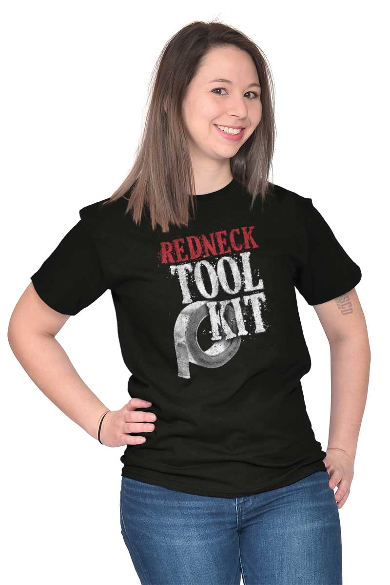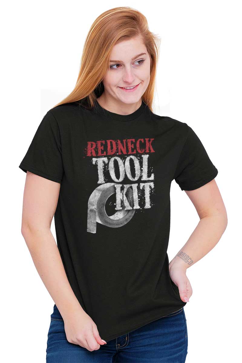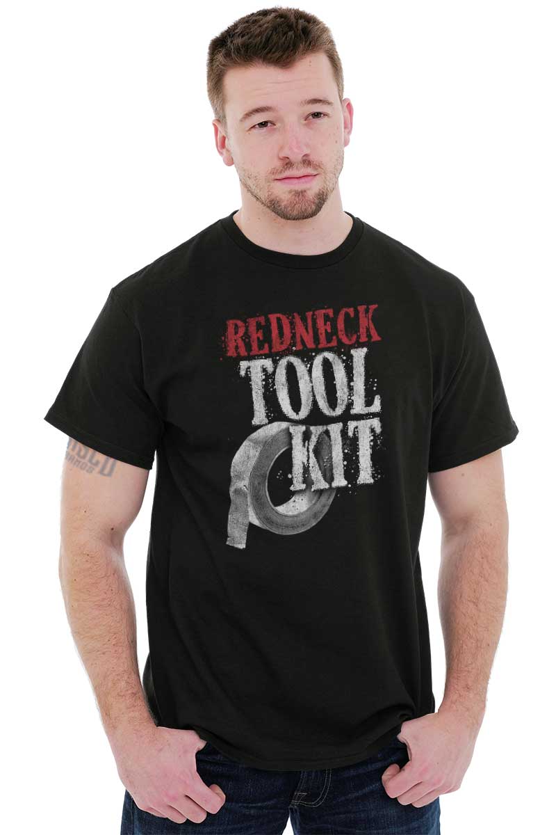 An actual Redneck tool kit contains a number of things, but the most indispensable item is duct tape. It can be used to mend broken objects or attach multiple things, like taping beer cans together to create a measuring stick or a sword. The uses for duct tape are endless. Hell, you don’t even have to be a Redneck to realize the importance of duct tape, but if you are a Redneck, it’s just that much more special. It’s like God from a roll. This Redneck T shirt is for all you Rednecks out there, because you just can’t live without duct tape.