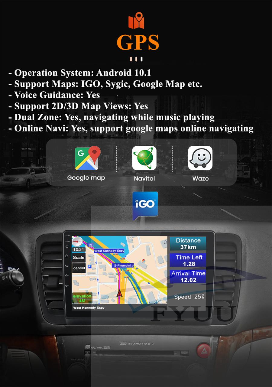 GPS | - Operation System: Android 10.1 - Support Maps: IGO, Sygic, Google Map etc. - Voice Guidance: Yes - Support 2D/3D Map Views: Yes - Dual Zone: Yes, navigating while music playing - Online Navi: Yes, support google maps online navigating |