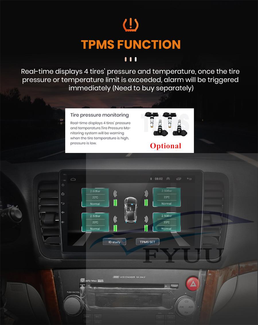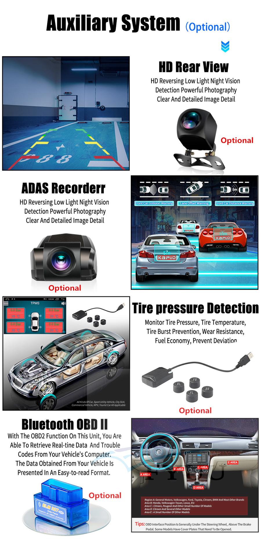 Additional | - Textbook: Could change font, font color, background color, bookmark, reading E-book while listening music - Photo Viewer: Support JPS, BMP, PNG, GIF etc. format. play by revolve, Powerpoint Support 4096*4096 Pixels - Wallpapers: 5 live wallpapers, 17 standard wallpapers, support DIY wallpaper from Gallery - APK Installer: Support Android Package installer - Support Torque Pro(OBD2 &Car): Yes, you can connect a Bluetooth OBD2 Scanner Tool to use this function - Support Mirror Link function: Yes, support screen mirroring from iPhone and android smartphone - Support TPMS: YES (Not Included) |