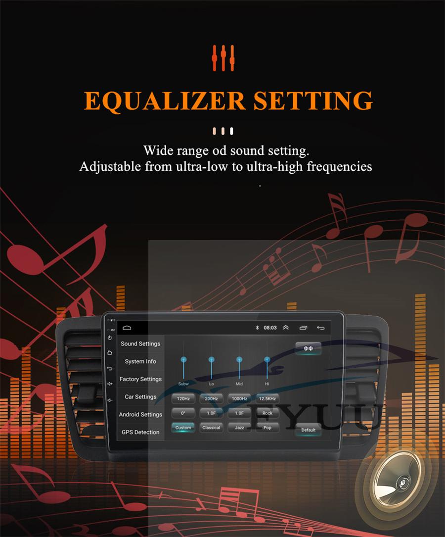Setup | - WiFi/Hotspot/Bluetooth: Yes - Brightness level adjustable: Yes - Wallpaper: Wallpapers/Live Wallpapers/Gallery - Sound: Key Tone & Volume - Storage: Display Internal Storage/Nand Flash/Connected Device Storage - Apps: Running Apps display/force stop/uninstall - Security: Yes - Accounts: Yes - Languages and Input: more than 70 Languages and choose input method - Backup and Reset: Yes - Date and Time: Setting Date&Time by yourself or choose GPS/network-provided time - Accessibility: Yes - GPS: Yes, GPS application options/monitoring/sound mode/mixing ratio - Driving safety: Watching Video, Reversing X-mirror/Volume, Reversing Trajectory/radar Display, Rear view ruler - Amplifier: Rock/Pop/Jazz/Classic/Flat/Voice/Custom - Steering Wheel Control: Yes - About Device: Display Parameter Info. |