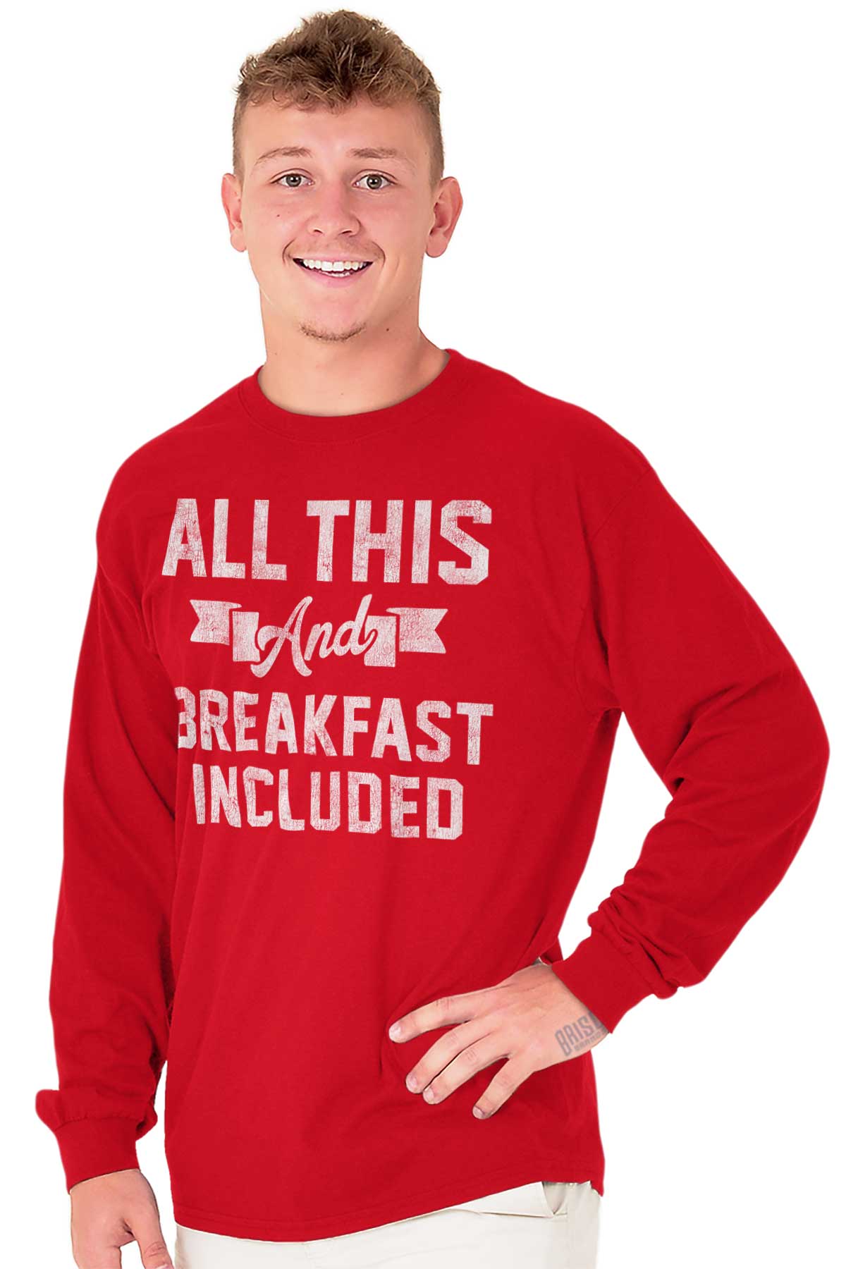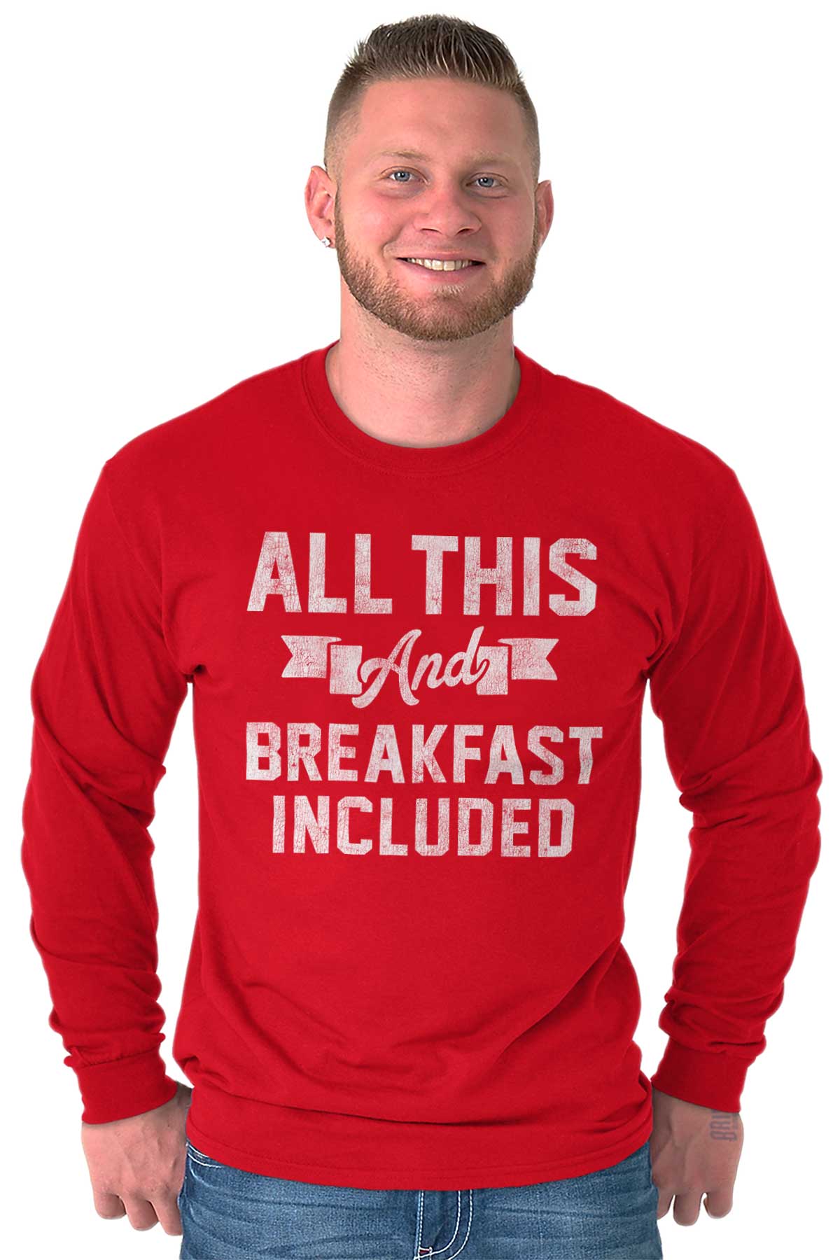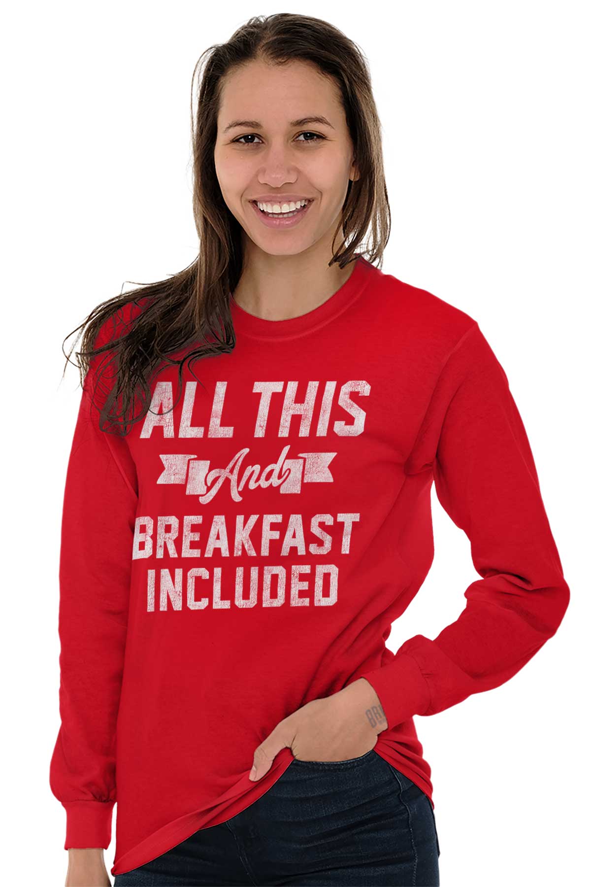 I think we all know what this means! If you don't then go look it up or something I don't have the space to explain it to you. Nothing like waking up from that fun and romantic Valentine's night to the mesmerizing smell of eggs cooking and bacon sizzling and your girl or man wearing this funny Long Sleeve T-Shirt. Your significant other will be remember the fun night before while feeling just as good when eating that delicious breakfast the morning after. He or she will be laughing in agreement to this cute Long Sleeve T-Shirt that shows you have the whole package.