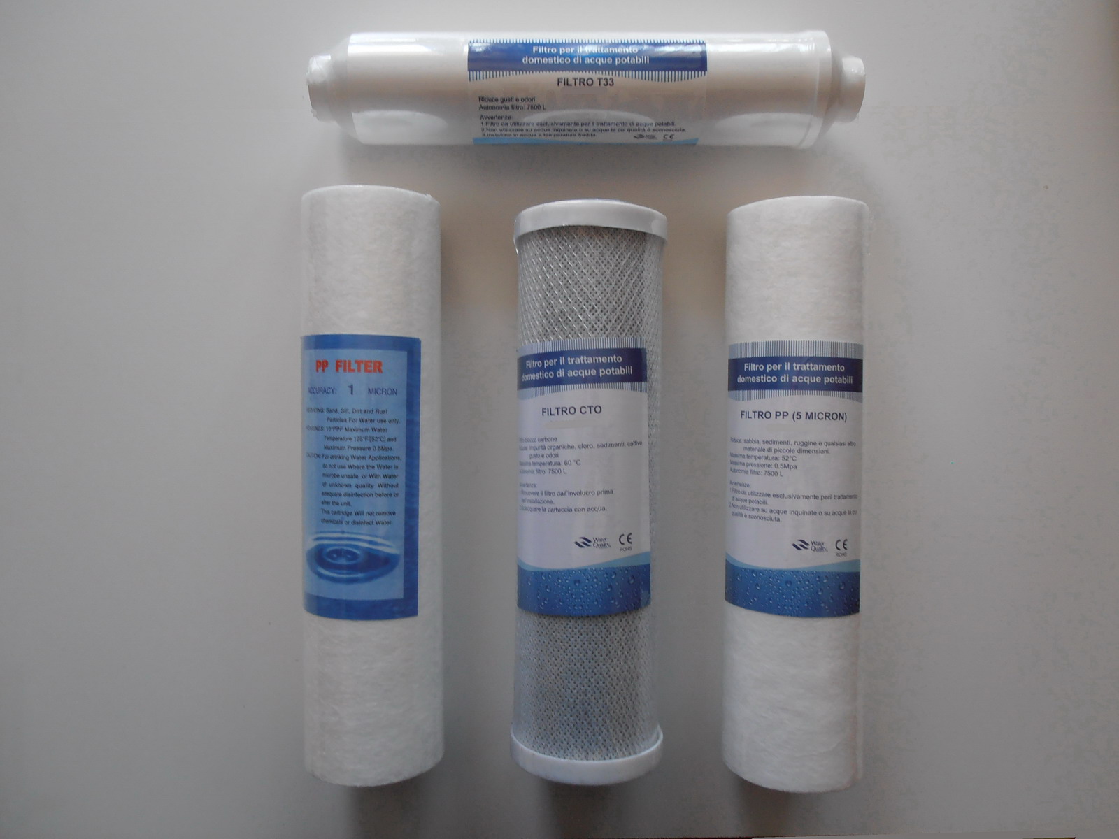 3° stadio: PPF cartuccia a panno, in fiocco di polipropilene, per sedimenti 1 Micron, rimuove sabbia, ruggine, particelle in sospensione.