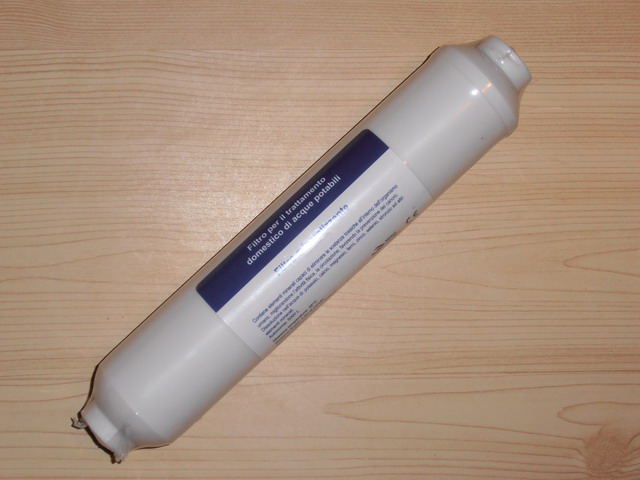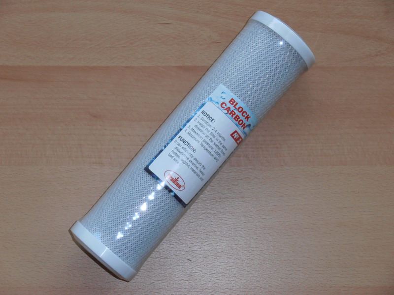 2° stadio: CTO cartuccia a carbone attivo (carbon block, per una maggiore efficienza rispetto al normale carbone attivo granulare), per rimuovere sostanze organiche, cloro e pesticidi.