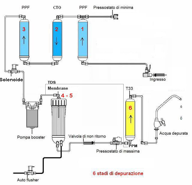 6 Stadi con 2 membrane - POMPA BOOSTER - Auto FLUSH - COMPUTER