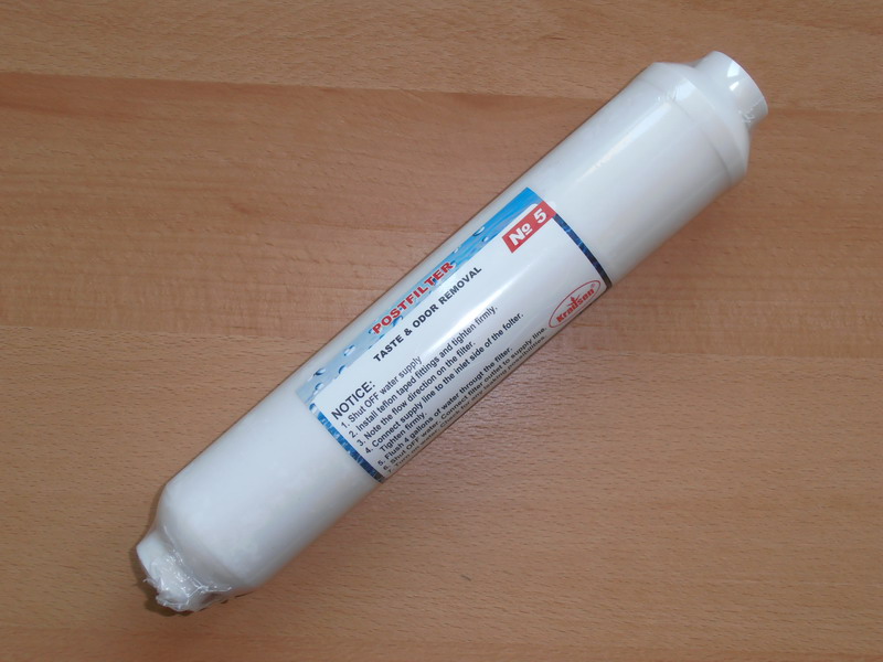 1 filtro ALCALINO in-line, lascia passare alcuni sali minerali naturali, rende l'acqua più alcalina con un sapore più gradevole.