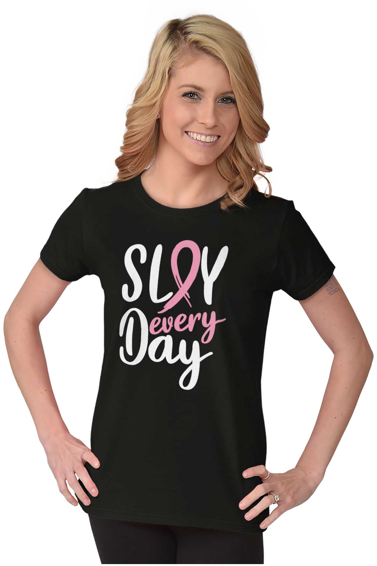 Breast Cancer Survivor Slay Every Day Womens T Shirt Ladies Tee